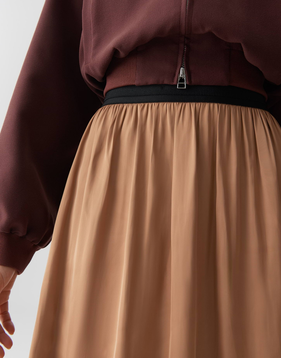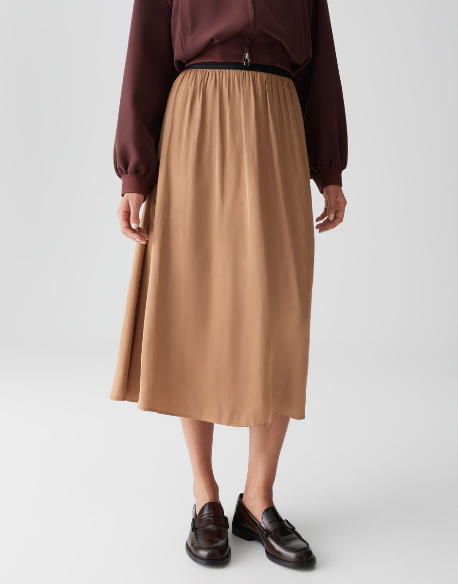 Ein elastischer Gummibund in der Taille garantiert optimalen Sitz und hohen Komfort – ganz ohne einzuengen. Dank des reduzierten Designs lässt sich der Rock vielseitig kombinieren: Ob mit einer schlichten Bluse fürs Büro oder einem lässigen Shirt in der Freizeit – dieser Midirock passt zu jedem Stil.