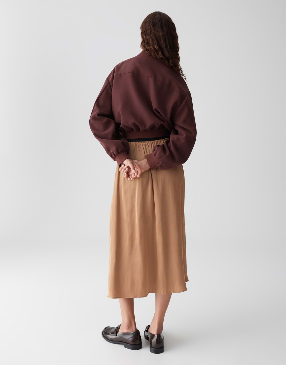 Dieser lässig-elegante Rock in A-Linie überzeugt mit einer femininen Silhouette und einem hohen Tragekomfort. Die lockere Passform in Kombination mit der klassischen Midi-Länge (hintere Länge ca. 82 cm in Größe 36) sorgt für einen modernen und gleichzeitig zeitlosen Look. Gefertigt aus hochwertiger Webware mit dezenter Struktur bietet der Rock einen natürlichen Griff und einen fließenden Fall, der bei jeder Bewegung leicht mitschwingt.