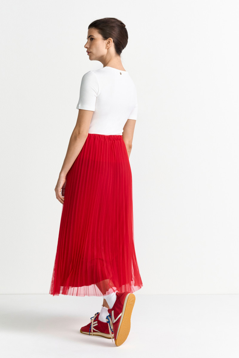 Das definierte Plissee (Faltenrock) verleiht dem Rock eine elegante Dynamik und schwingt bei jeder Bewegung leicht mit. Gefertigt aus einem fließenden, pflegeleichten Chiffon oder Polyester-Gewebe, garantiert dieser Faltenrock einen angenehmen Tragekomfort und fällt perfekt, ohne aufzutragen.