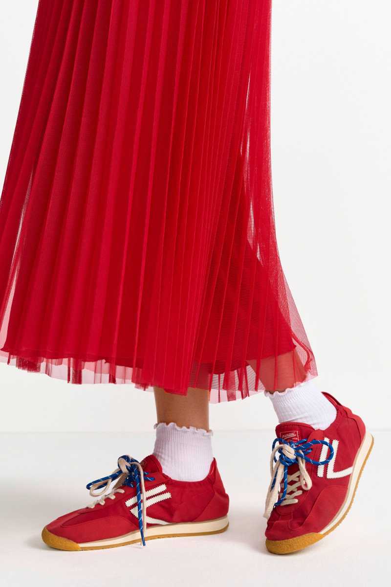 Kombinieren Sie diesen roten Rock im A-Linien-Schnitt elegant mit Blusen und Stiefeletten oder lässig mit Sneakern und einem Grobstrickpullover für einen modernen Color-Blocking-Look. Kaufen Sie diesen zeitlosen, aber trendigen Plisseerock jetzt und erweitern Sie Ihre Auswahl an Damenröcken um ein vielseitiges Highlight.