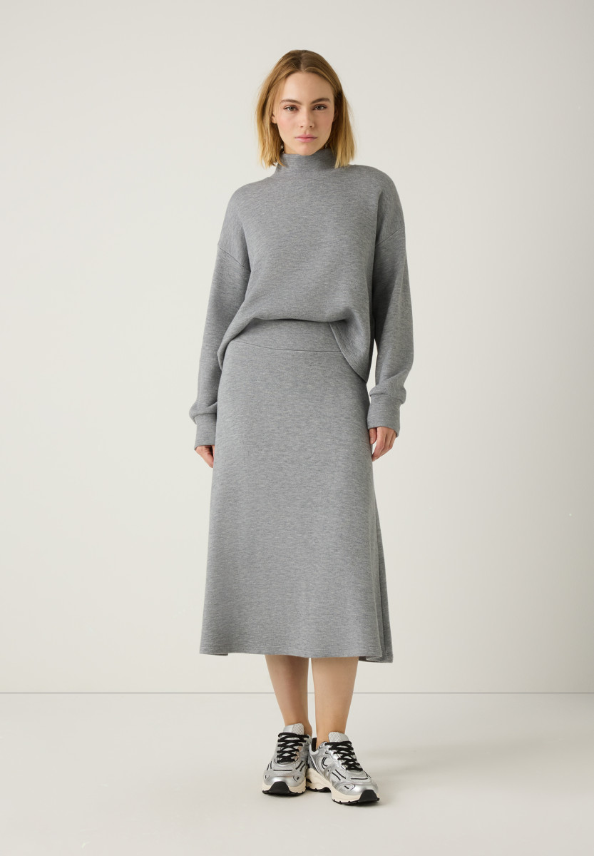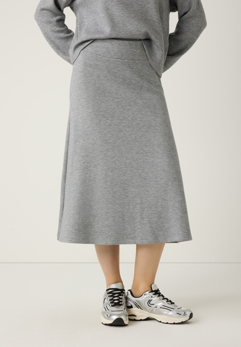 Stylish, bequem und perfekt für jeden Tag: Der schwingende A-Linien-Rock von MORE & MORE in moderner Midi-Länge sorgt dank der soften Jerseyware und dem elastischen Bund für maximalen Komfort und ist ein vielseitiger Favorit für entspannte Herbst-Looks. Stylen Sie das Trendpiece wahlweise casual mit passendem Sweatshirt zu einem gemütlichen Zweiteiler oder etwas eleganter mit femininer Satinbluse und Heels.