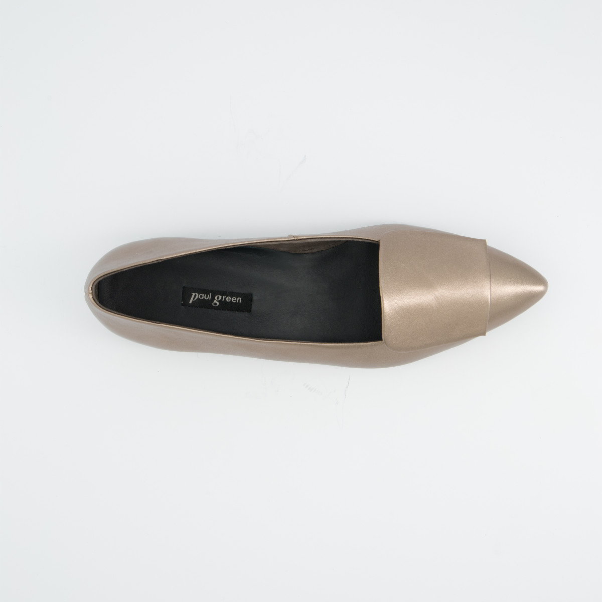 Der Ballerina von Paul Green aus der Serie 3792‑178 präsentiert sich als eleganter Klassiker mit weichem, metallisch schimmerndem Leder und cleanem Cap‑Toe‑Design. Dank der SUPER SOFT®-Ausführung überzeugt er mit erstklassigem Tragekomfort und optimaler Passform. Die flexible Gummisohle sorgt für einen leichten, sicheren Auftritt – ideal für den Alltag und office‑taugliche Casual-Looks.