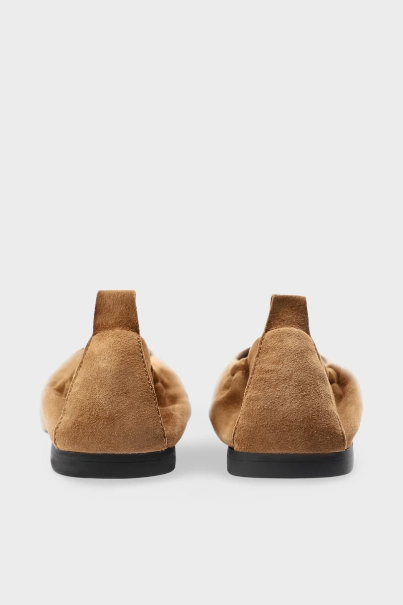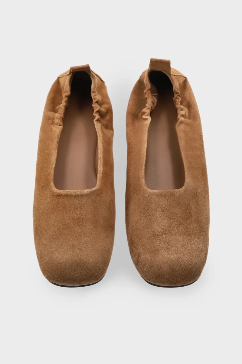 Ballerinas aus weichem Suede mit einer schlanken, eleganten Slip-On-Silhouette. Elastische Einsätze an den Seiten und eine dezente Zugschlaufe sorgen für angenehmen Komfort. Die leicht eckig zulaufende Zehenpartie sowie die flache Sohle mit einem leichten Blockabsatz runden das minimalistische und stilvolle Design perfekt ab.