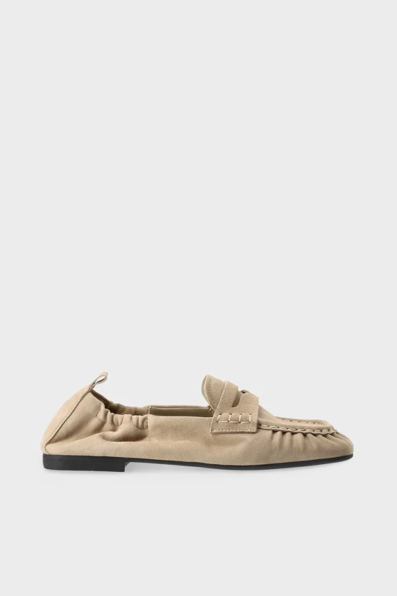 Ballerinas aus weichem Suede mit Moccasin-Charakter. Die schlanke Slip-On-Silhouette mit elastischen Einsätzen an den Seiten und einer dezenten Zugschlaufe sorgt für angenehmen Tragekomfort. Lederapplikationen und die feine Raffung an der Naht verleihen dem Schuh das gewisse Extra. Die leicht eckig zulaufende Zehenpartie sowie die flache Sohle mit einem dezenten Blockabsatz runden das minimalistische und stilvolle Design perfekt ab.