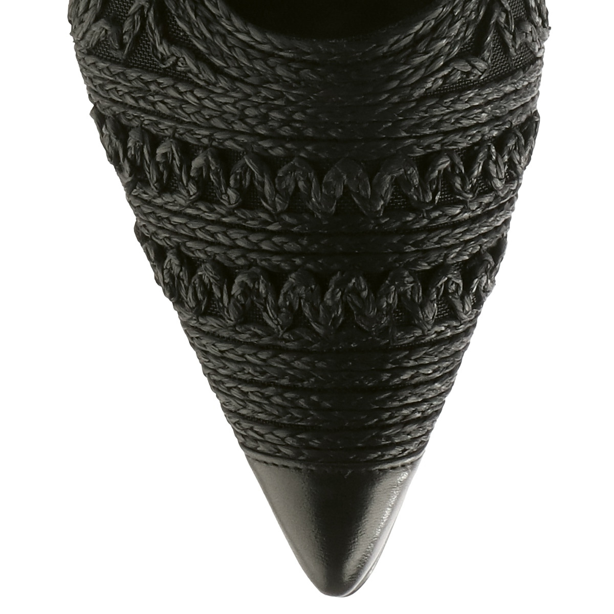 Raffiniertes Makramee ziert den exklusiven Ballerina "Bella" und verwandelt ihn in einen charmanten Begleiter für warme Sommertage. Der lange, spitze Leisten verleiht der Silhouette subtile Eleganz, während sich die aufwendig gesteppten Bastzöpfe verspielt in das Design einfügen. Innen ist der schwarze Ballerina mit komfortablem Lederfutter ausgestattet, der tonale Blockabsatz vereint bequemes Tragegefühl mit femininer Optik. Im Sommerurlaub, für den Weekend-Trip oder für das Date mit den besten Freundinnen.