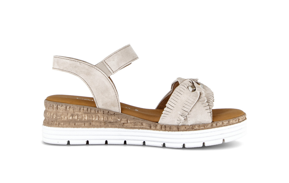 Diese Damen Plateau Sandalen verbinden modisches Design mit praktischem Komfort. Die runde Schuhform, die Plateau-Sohle mit einer Absatzhöhe von 50 mm und der praktische Klettverschluss sorgen für sicheren Halt und einfaches An- und Ausziehen. Das Innenfutter aus Microfutter bietet ein angenehmes Tragegefühl auch bei längeren Tragezeiten.Lief.-Art-Nr: 82.704.33