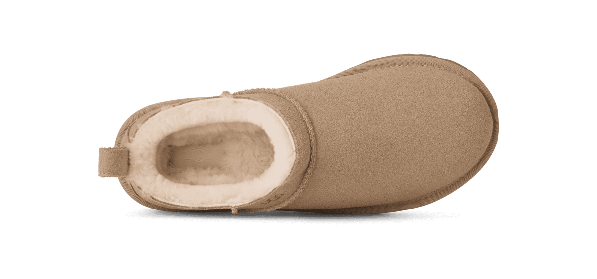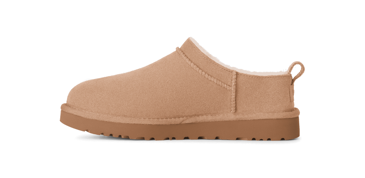 Der UGG® Classic Micro ist die moderne Neuinterpretation des legendären Classic Boots – jetzt mit einem frischen, flacheren Design und dem gewohnten UGG-Komfort. Das hochwertige Obermaterial aus echtem Wildleder trifft auf ein besonders weiches Lammfellfutter, das deine Füße angenehm warm hält – ganz ohne Socken, wenn du magst.