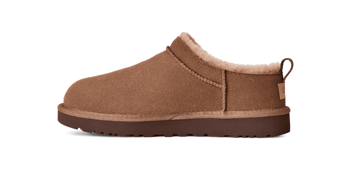 Der UGG® Classic Micro ist die moderne Neuinterpretation des legendären Classic Boots – jetzt mit einem frischen, flacheren Design und dem gewohnten UGG-Komfort. Das hochwertige Obermaterial aus echtem Wildleder trifft auf ein besonders weiches Lammfellfutter, das deine Füße angenehm warm hält – ganz ohne Socken, wenn du magst.