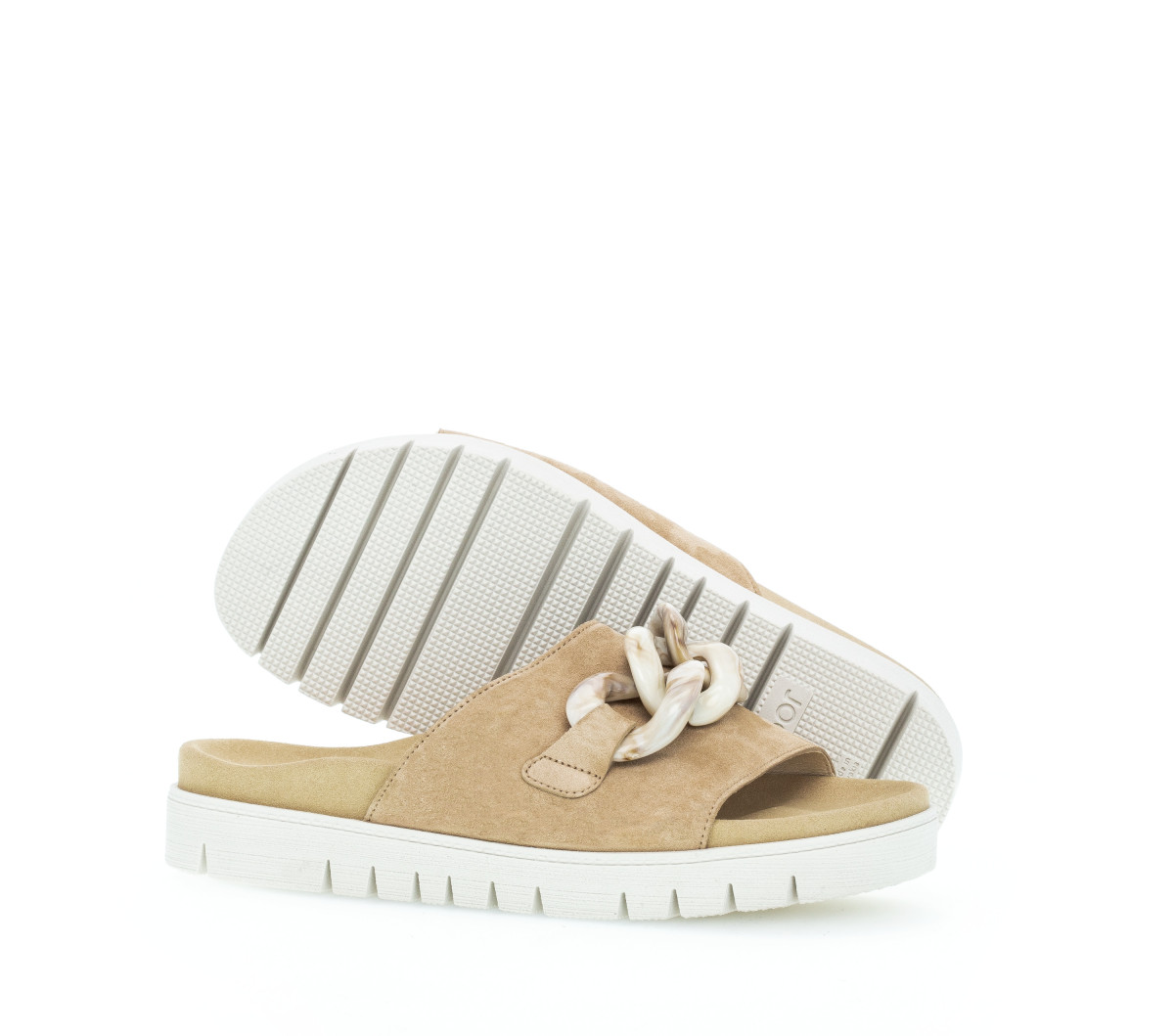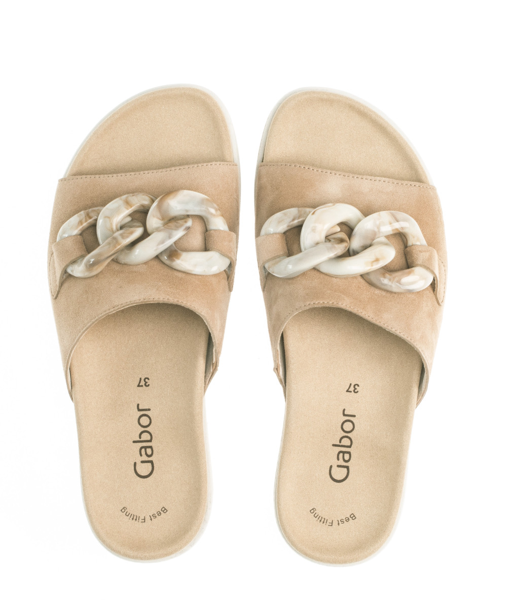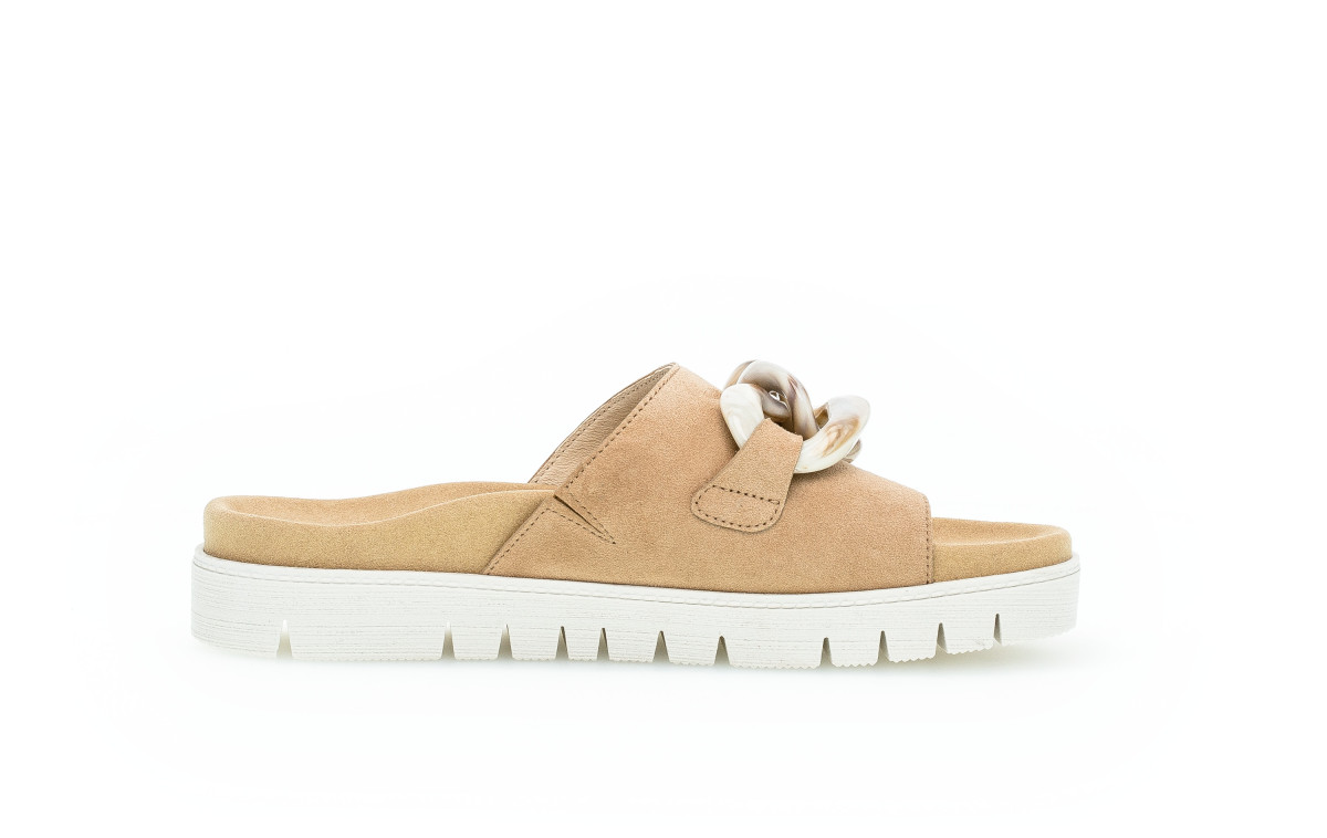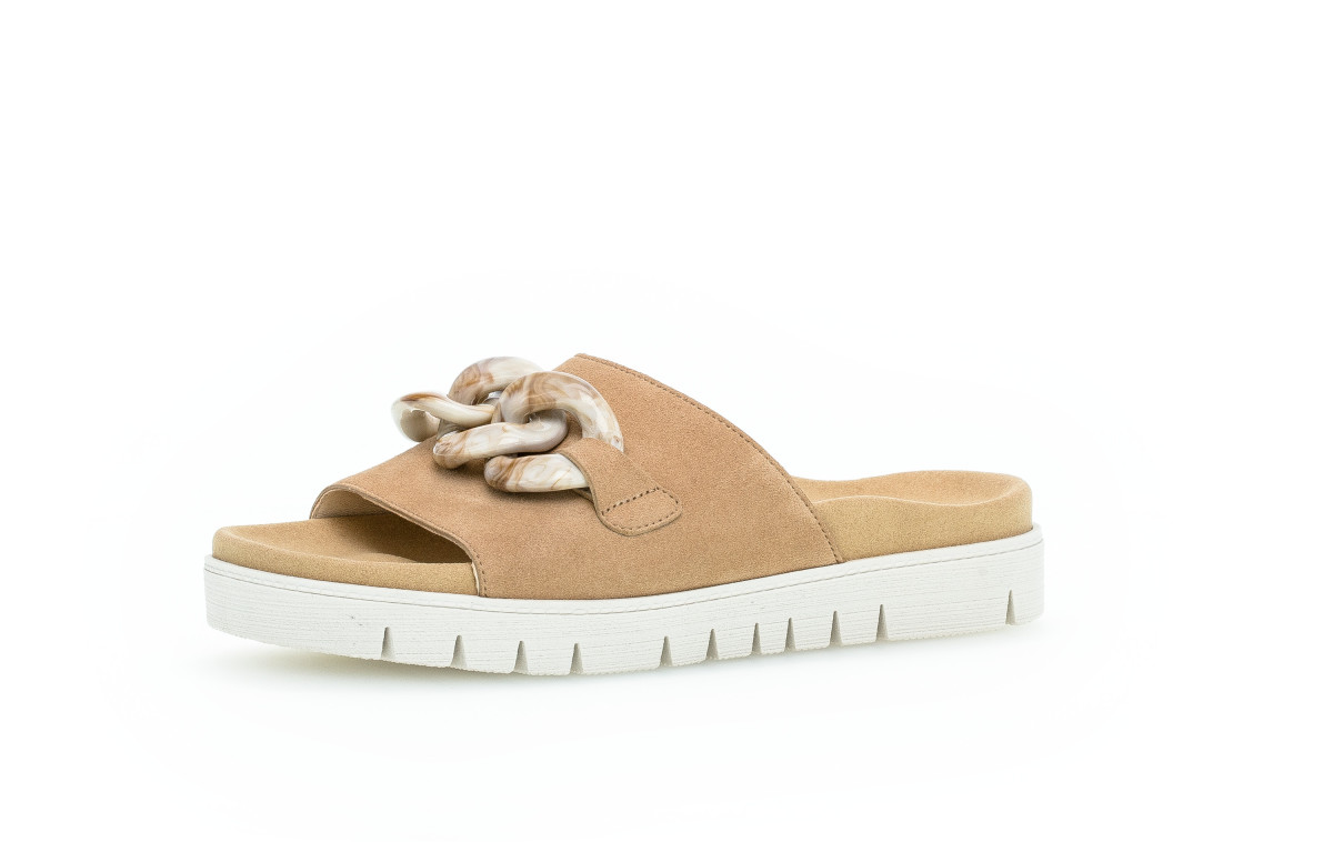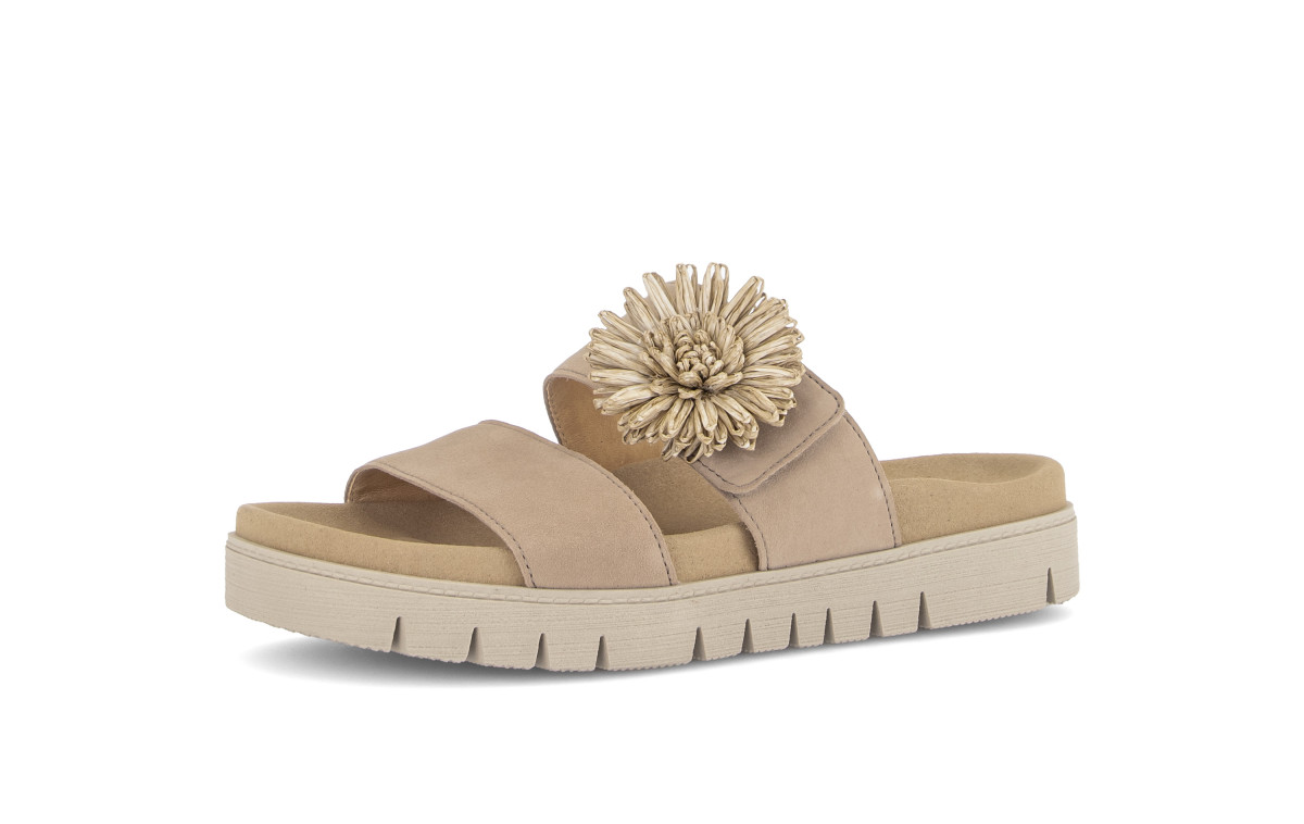Diese Damen Pantoletten überzeugen durch ihr schlichtes, zeitloses Design mit runder Schuhform und flachem Absatz. Die Absatzhöhe beträgt 35 mm und verleiht dem Modell einen dezenten Auftritt, der sich gut für den Alltag eignet. Der Gummizug sorgt für einen sicheren Sitz, während das Innenfutter aus Leder gefertigt ist.Lief.-Art-Nr: 83.743.14