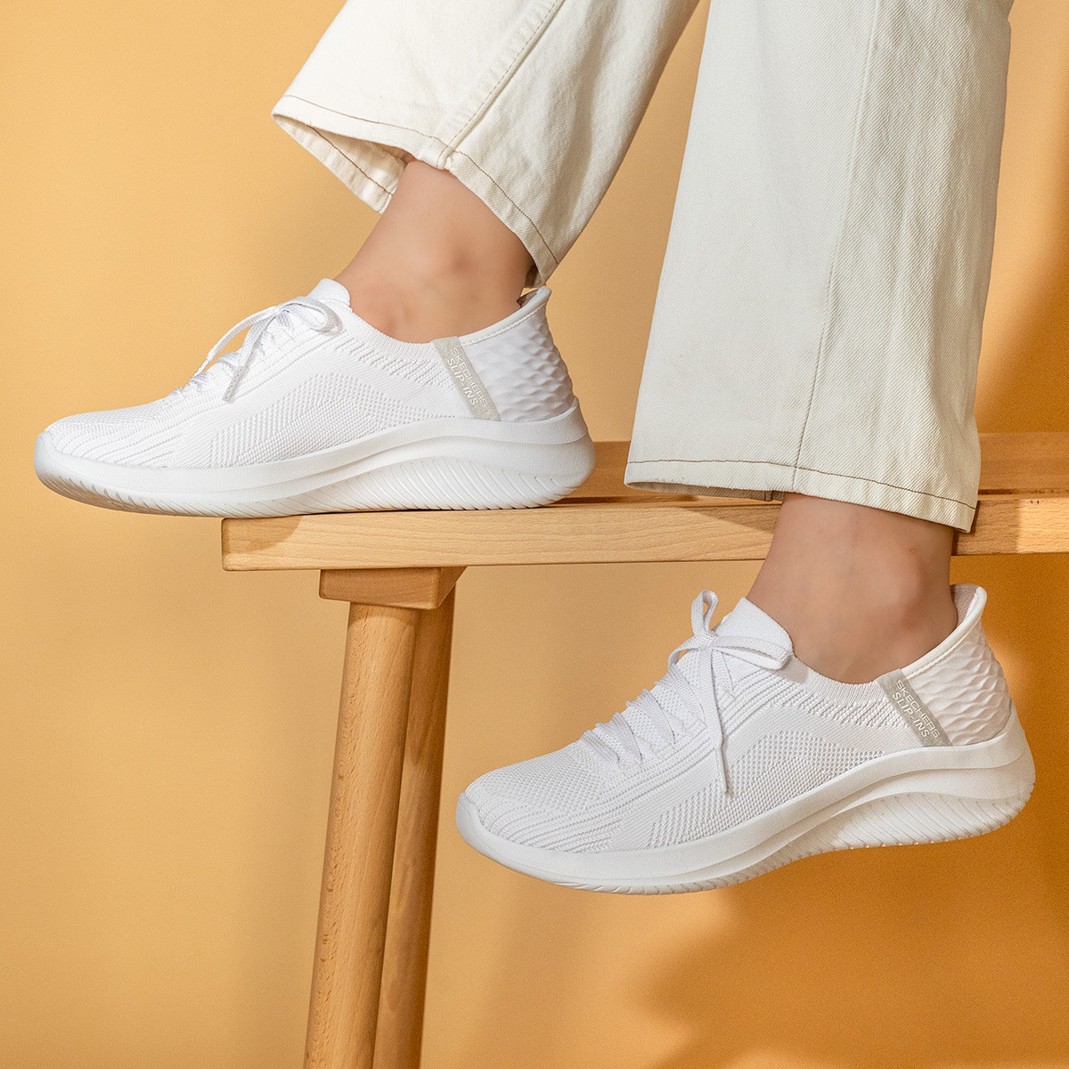 TOUCHLESS FIT™: So einfach wie mit den Skechers Hands Free Slip-ins®: Ultra Flex 3.0 - Brilliant Path war Anziehen noch nie. Mit dem exklusiven Skechers Fersenkissen (Heel Pillow). Dieses Modell verfügt über ein Stretch Fit-Obermaterial aus Funktionsstrick mit einer Zierschnürung und eine gepolsterte Skechers Air-Cooled Memory Foam-Innensohle.