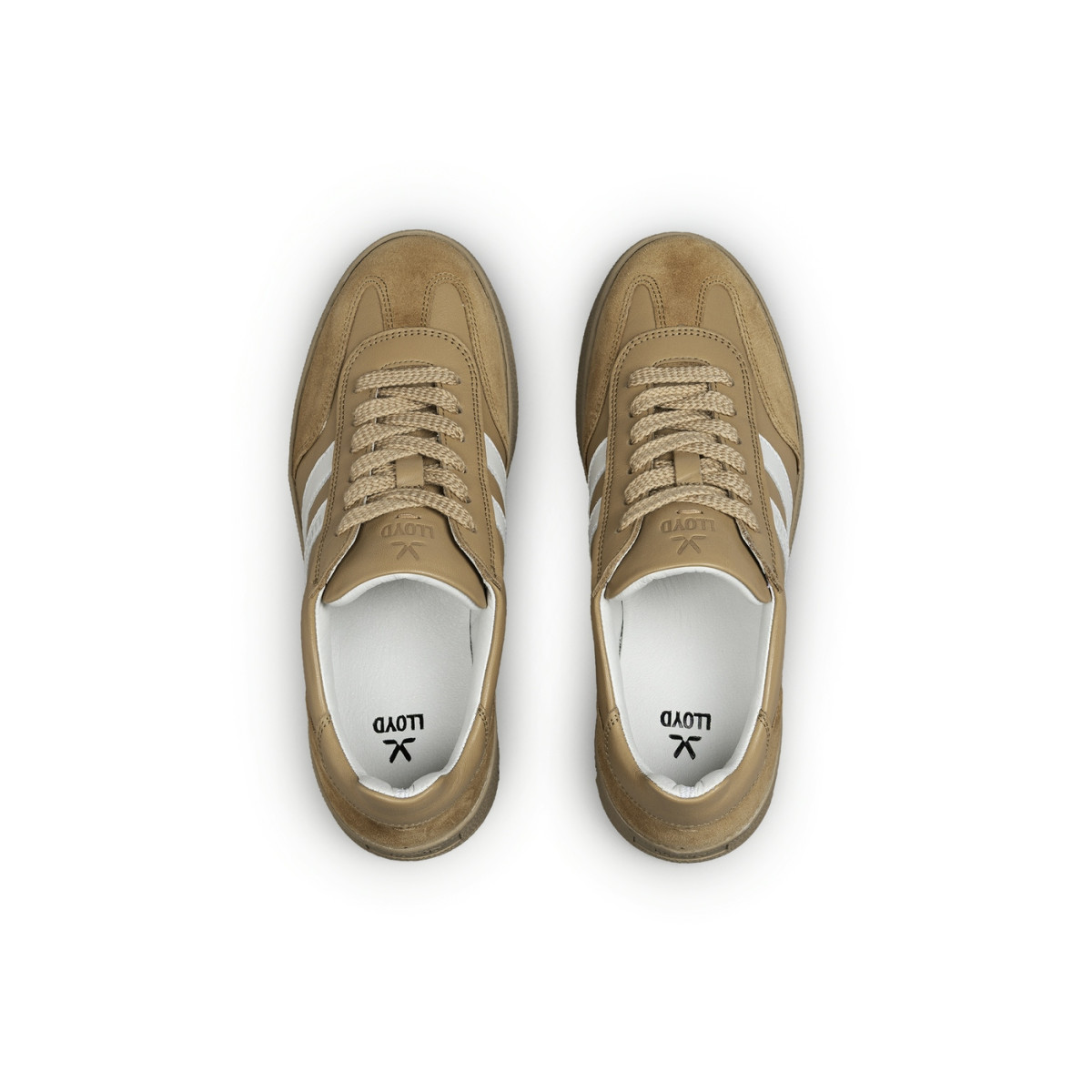 Entdecke den LLOYD BRAVA Sneaker in Hellbraun, der durch eine Kombination aus Glatt- und Rauleder im Obermaterial besticht und mit einer runden Schuhspitze einen klassischen Look bietet. Die Gummisohle sorgt für sicheren Halt, während das Innenfutter (60% Textil, 40% Leder) und die Lederinnensohle für angenehmen Tragekomfort sorgen. Der Sneaker ist vielseitig kombinierbar und eignet sich für viele Gelegenheiten.Lief.-Art-Nr: 1650134-BRAVA