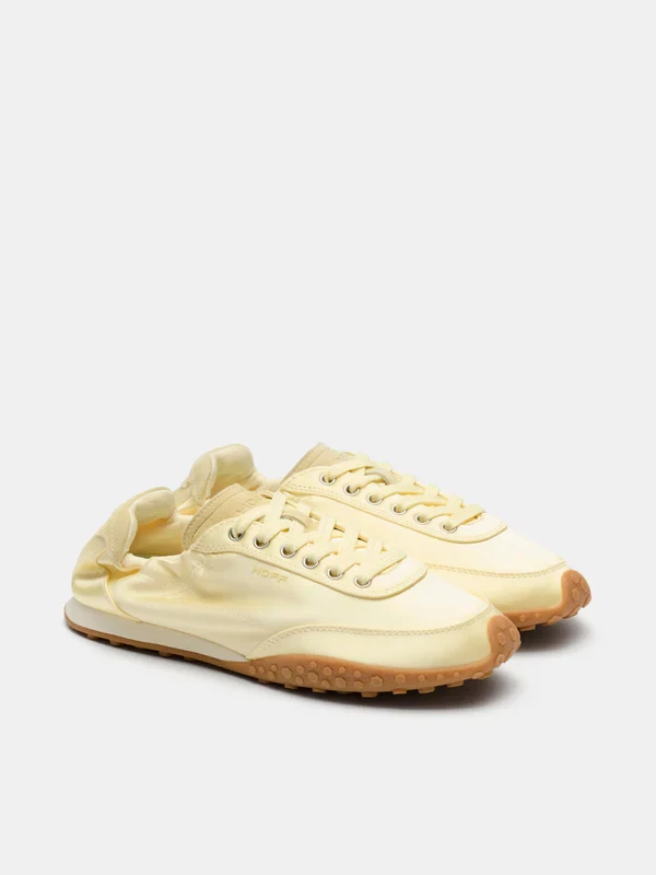 Einfarbiger Sneaker aus Satin und Leder. Rückseite mit Logodetail und elastischem Raffungseinsatz für besseren Halt. Profilierte Sohle. Ton-in-Ton-Schnürverschluss.