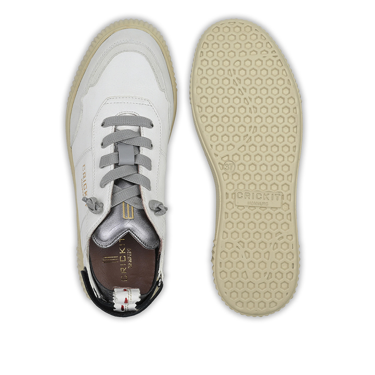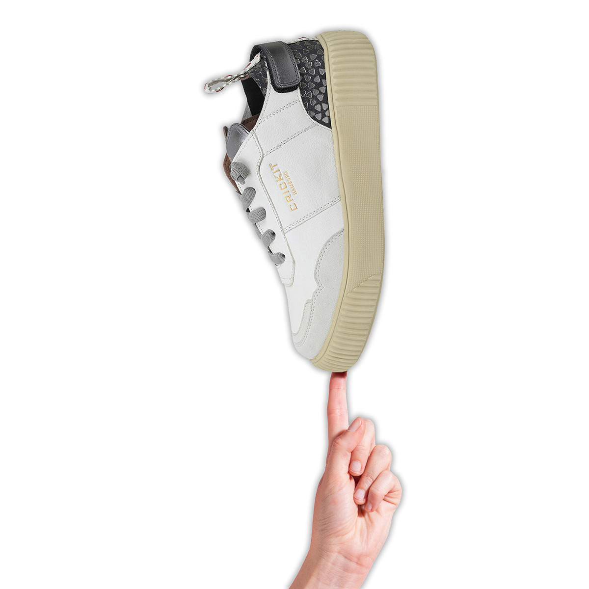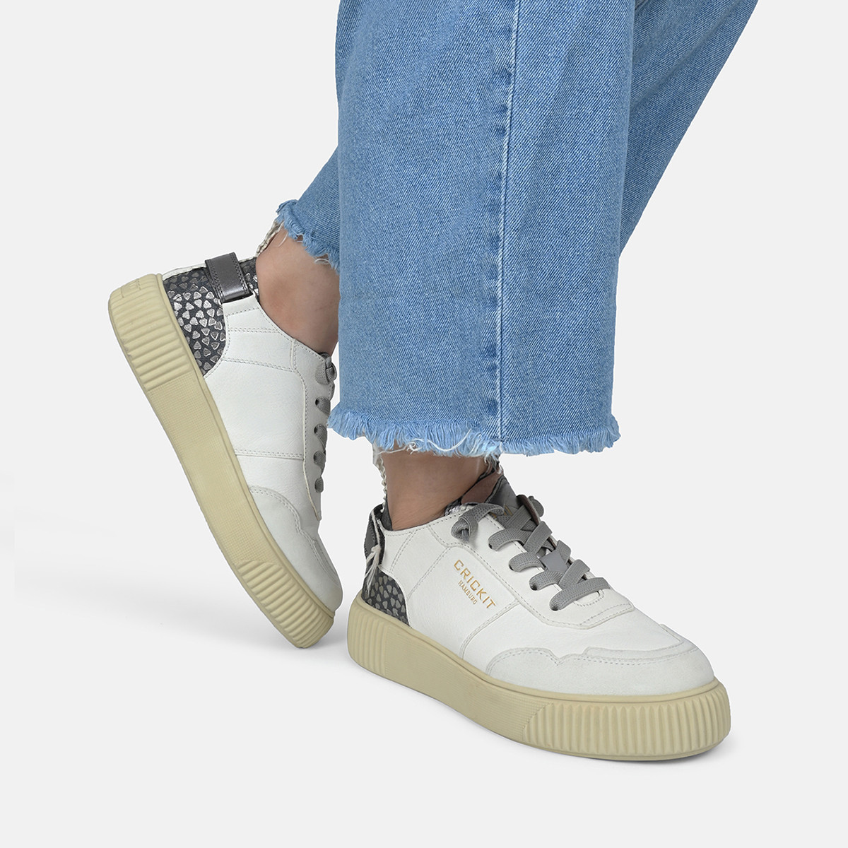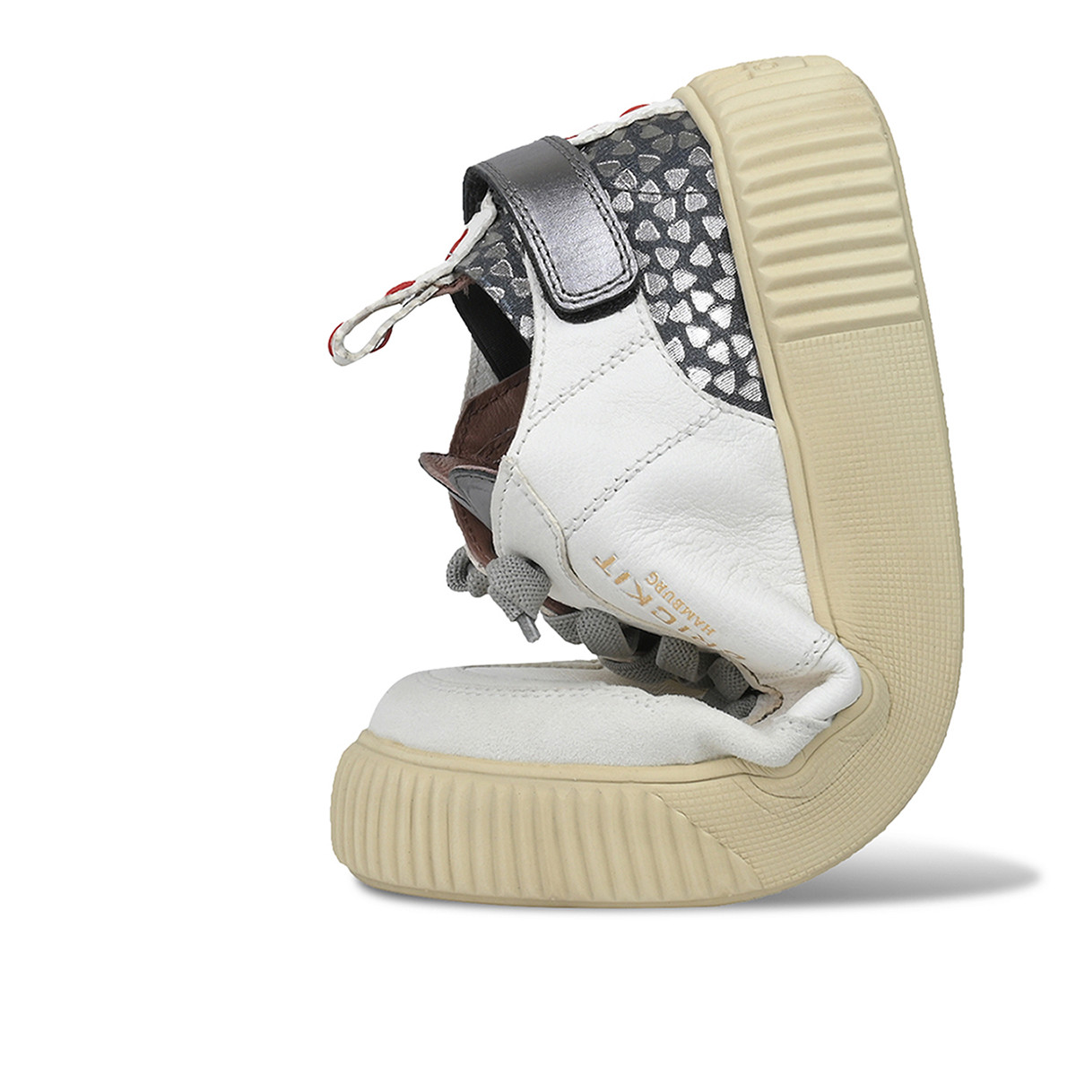 Der extra leichte Sneaker PARIA kombiniert urbanen Stil mit nachhaltiger Qualität. Das Obermaterial aus pflanzlich gegerbtem Ziegenleder in Weiß mit Metallic-Elastik und chromfrei gegerbtem Innenfutter sorgen für ein besonders angenehmes Tragegefühl. Zusätzlich ist das chromfreie Innenfutter besonders allergikerfreundlich. Das flexible, herausnehmbare Fußbett und die ultraleichte Sohle aus EVA bieten hohen Komfort. Die EASY-IN-Technologie mit elastischen Schnürsenkeln ermöglicht ein schnelles Hineinschlüpfen und durch den Klettverschluss an der Ferse wird ein hervorragender Halt geboten. PARIA ist der Sneaker, der Komfort, Stil und Umweltbewusstsein vereint.