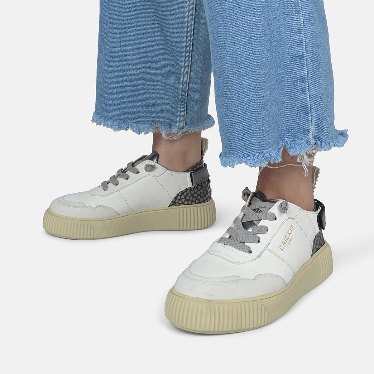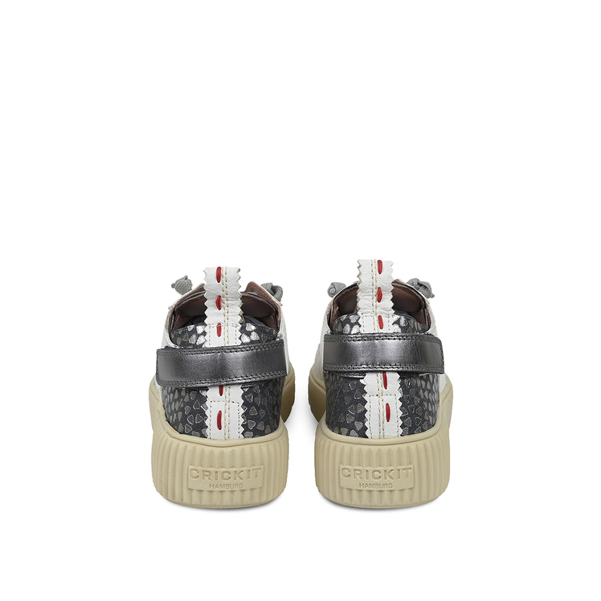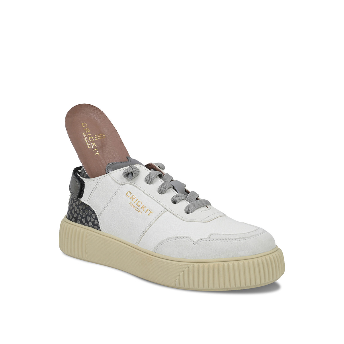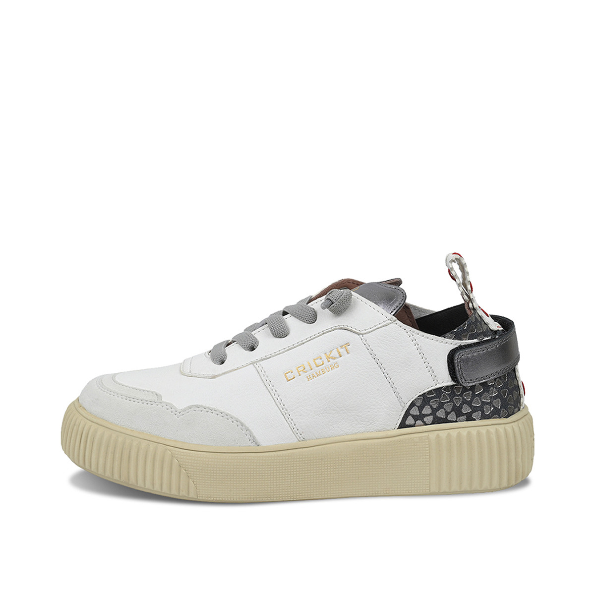 Der extra leichte Sneaker PARIA kombiniert urbanen Stil mit nachhaltiger Qualität. Das Obermaterial aus pflanzlich gegerbtem Ziegenleder in Weiß mit Metallic-Elastik und chromfrei gegerbtem Innenfutter sorgen für ein besonders angenehmes Tragegefühl. Zusätzlich ist das chromfreie Innenfutter besonders allergikerfreundlich. Das flexible, herausnehmbare Fußbett und die ultraleichte Sohle aus EVA bieten hohen Komfort. Die EASY-IN-Technologie mit elastischen Schnürsenkeln ermöglicht ein schnelles Hineinschlüpfen und durch den Klettverschluss an der Ferse wird ein hervorragender Halt geboten. PARIA ist der Sneaker, der Komfort, Stil und Umweltbewusstsein vereint.