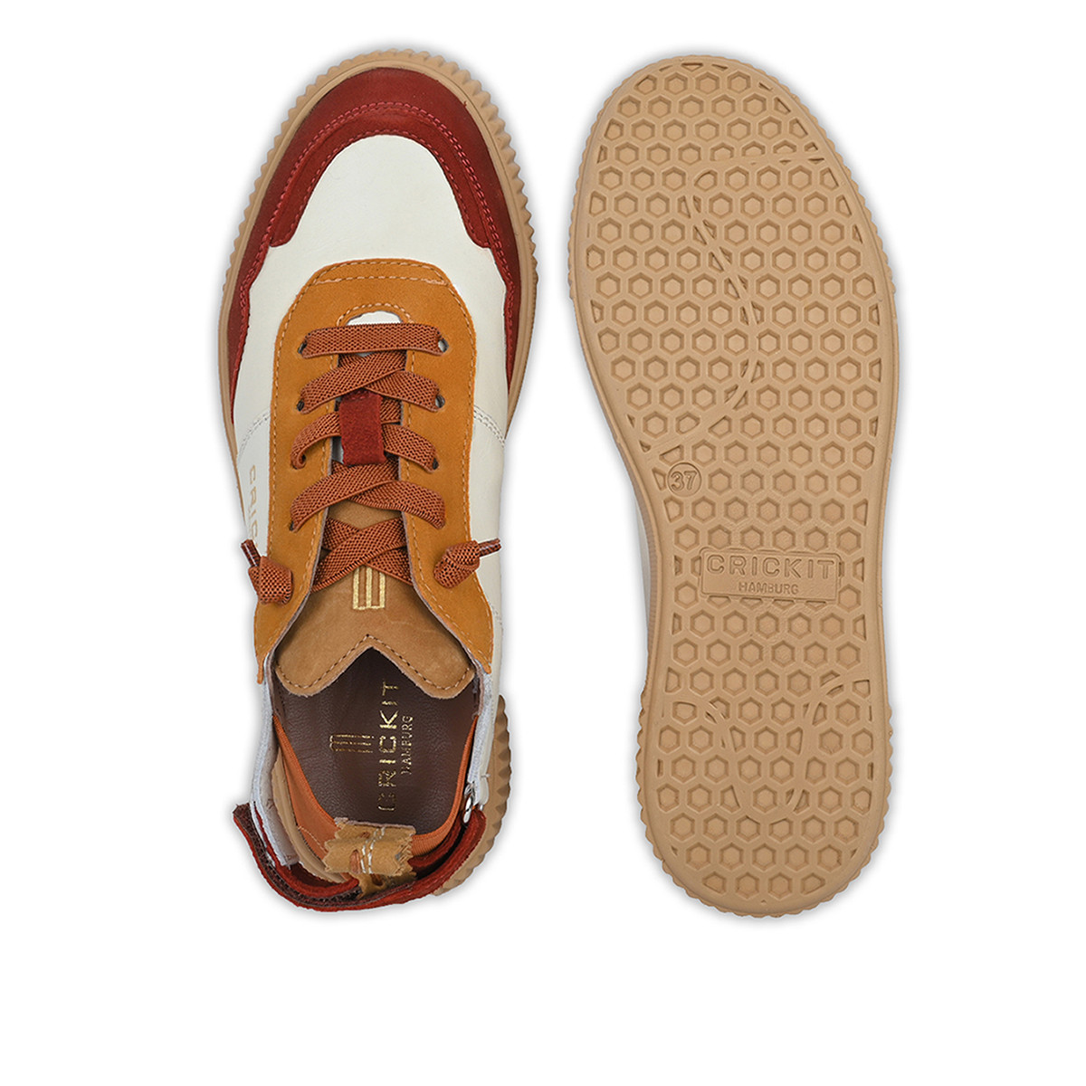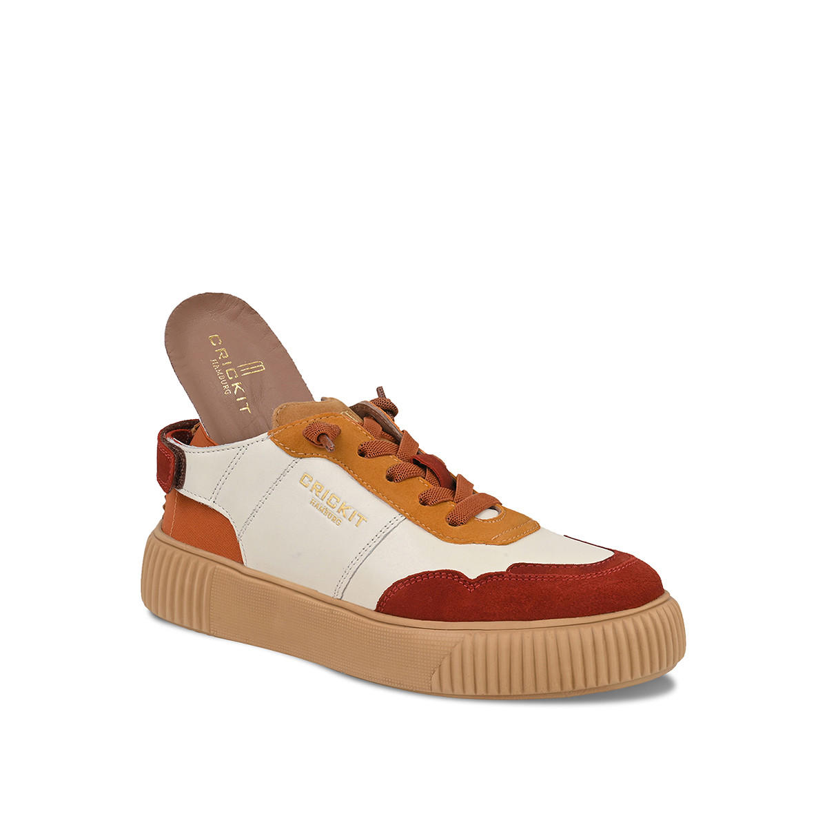 Du suchst noch nach einem Sneaker, mit dem du sowohl voll im Trend liegst, als auch allen anderen die Show stiehlst? Dann bist du hiermit fündig geworden! Mit PARIA mutierst du ruckzuck zur Trendsetterin. Die Kombination aus klassischem Weiss und farblichen Highlights in Rostbraun und Nude machen den Sneaker zu einem Highlight in jedem Schuhschrank. Das Obermaterial von PARIA ist aus pflanzlich gegerbtem Rindsleder und Veloursleder und lässt sich leicht pflegen. Das Futter von PARIA ist aus weicher Baumwolle und die EVA Sohle ist super leicht und lässt dich wie auf Wolken laufen. Ein Highlight: mit unserer Easy-In-Technologie sparst du dir wertvolle Zeit, denn jetzt ist Schluss mit lästigem Schnürsenkel-Schnüren. Und noch ein Highlight für Detailliebhaber: die typische CRICKIT-Naht an der Ferse. Das ist unverwechselbare CRICKIT-Qualität und liebevolles Design aus Hamburg.