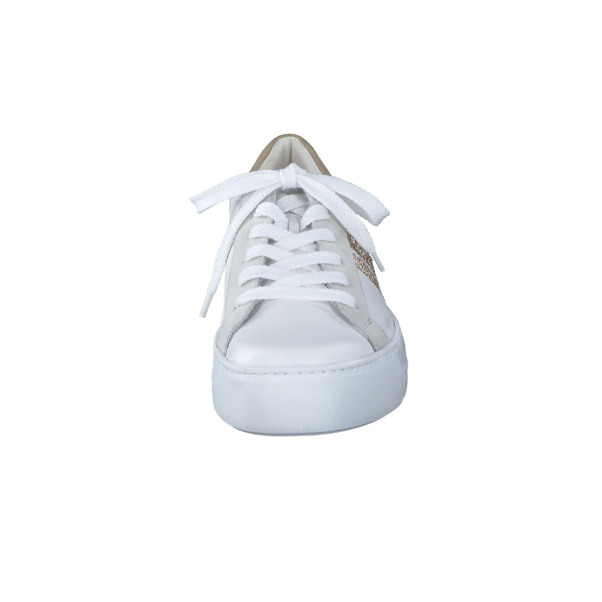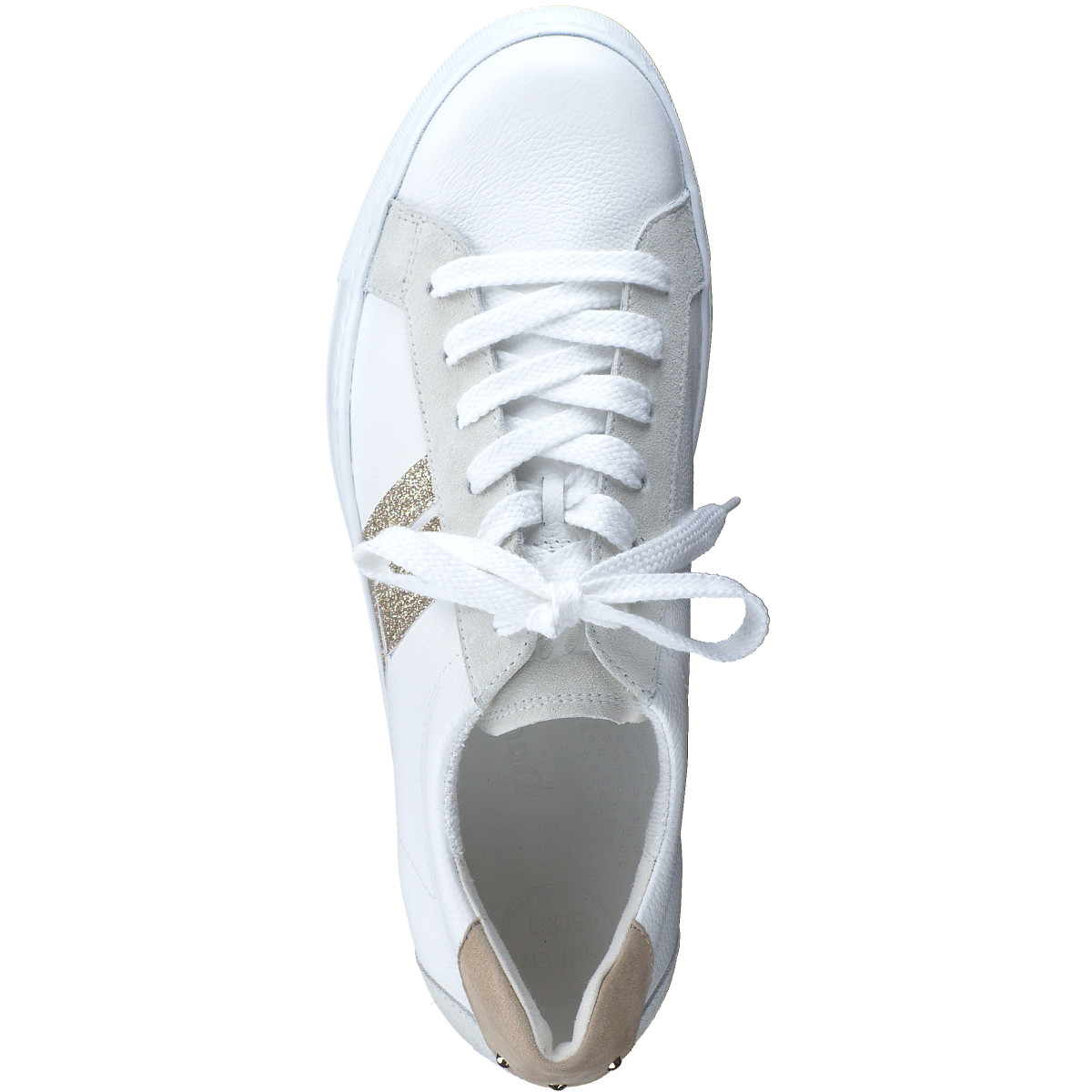 Der Paul Green Sneaker (Modell 5430‑06) kombiniert hochwertiges Glattleder mit textilen Einsätzen, die dem Schuh eine moderne, stilbewusste Note verleihen. Eine flache Schnürung sorgt für sicheren Halt, während das weiche Innenfutter und die lederbezogene Innensohle angenehmen Tragekomfort gewährleisten. Die 15 mm EVA‑Plattformsohle bietet federnden Lauf und ausgezeichnete Griffigkeit – ideal für trendbewusste Frauen, die ihren Casual-Look mit urbanem Chic und Komfort abrunden möchten.