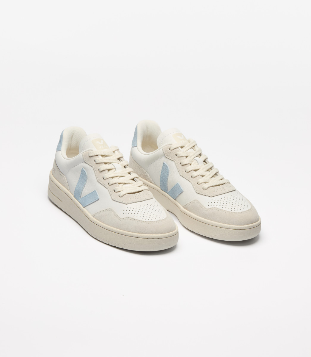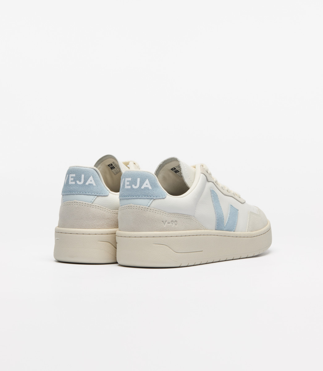 Ein zeitloser Sneaker aus hochwertigem Leder mit einer Gummisohle aus Naturkautschuk. Das klare Weiß kombiniert mit Stahlgrauen Akzenten verleiht dem V-90 eine elegante, sportliche Note.