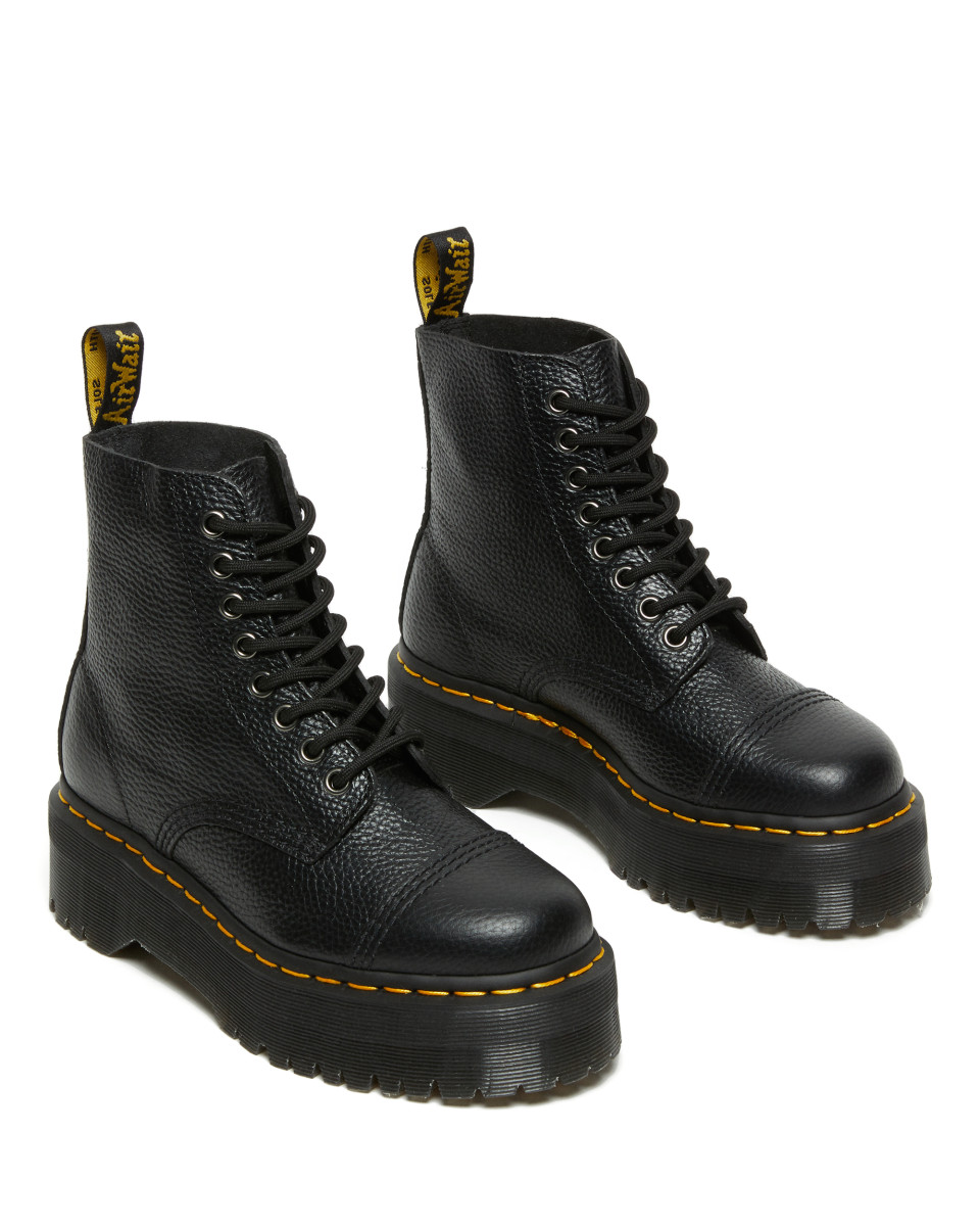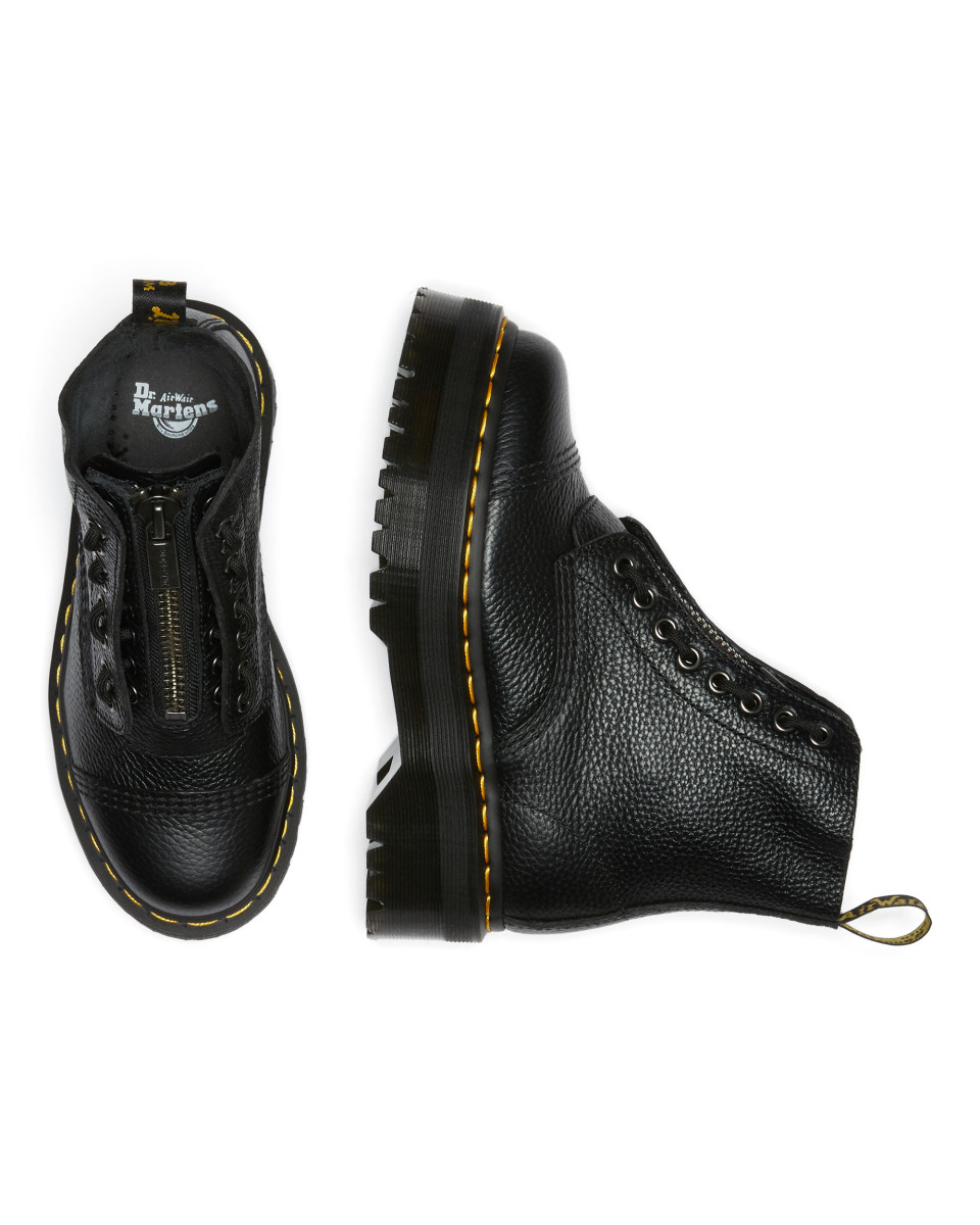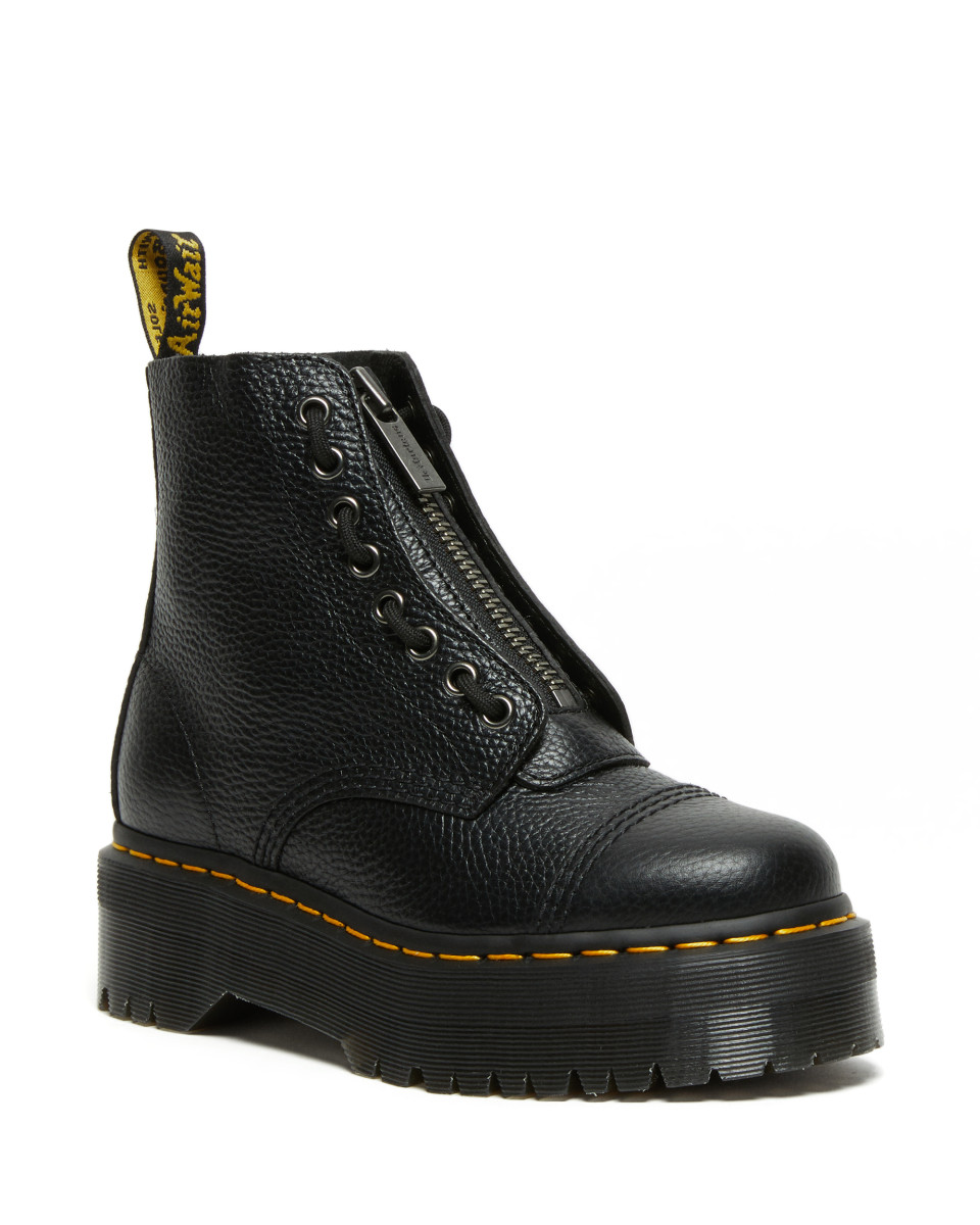 Der hoch aufragende Sinclair, ist mit einem abnehmbaren Dschungel-Reißverschluss, gelben Rahmennähten und einer Tonne von Docs Attitüde ausgestattet. Diese Stiefel, die auf einer hoch aufragenden Quad Plateausohle stehen, sind nichts für schwache Nerven..