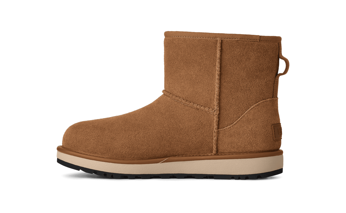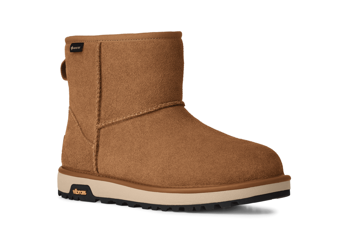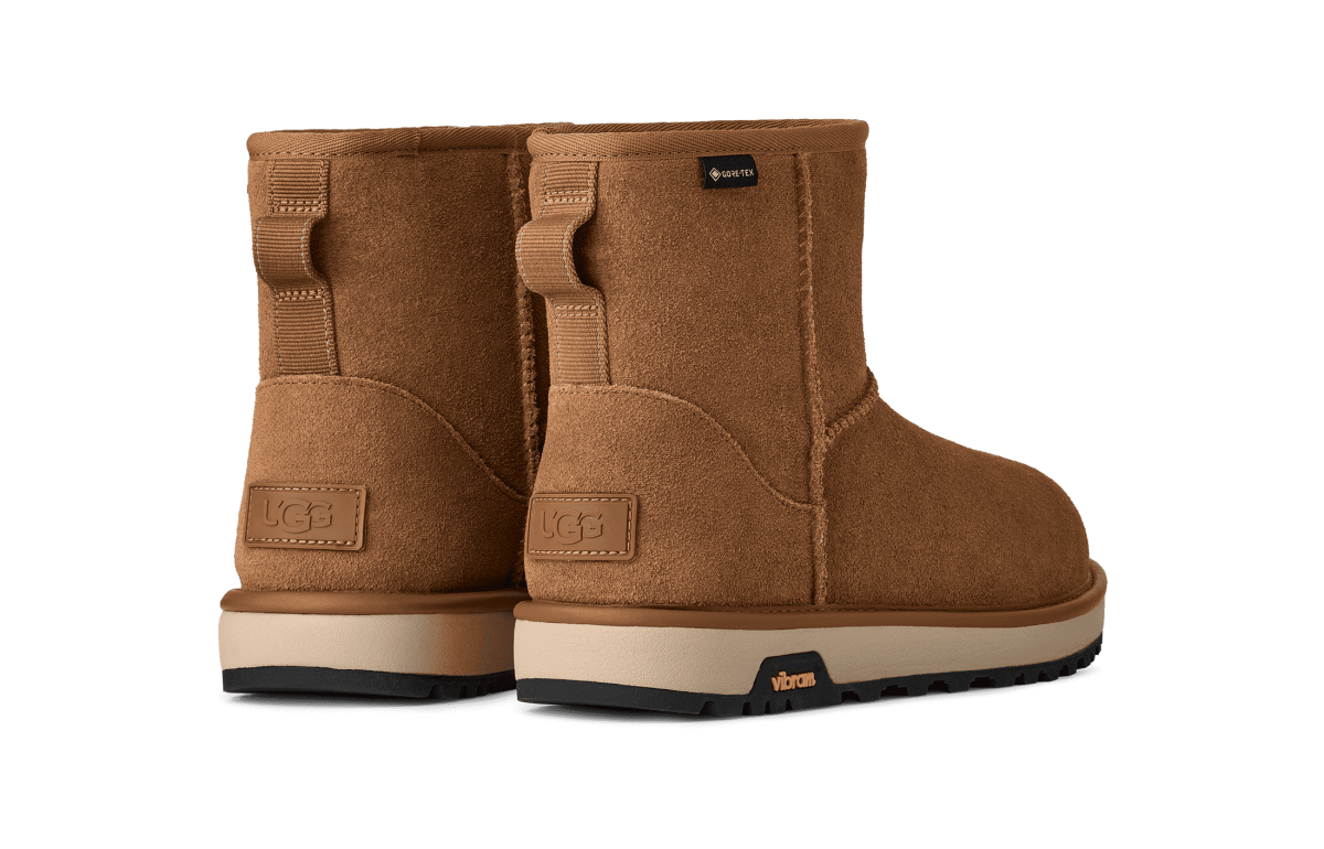 Mach deine Pläne nicht vom Wetter abhängig: Der Classic Mini GTX begleitet dich bei Regen und bei Sonnenschein. Diese Version des Classic Boots ist aus wasserdichtem Wildleder gefertigt und besitzt eine integrierte GORE-TEX-Membran, die Regen und Schnee draußen hält. Schlüpfe in die kuschelige Wärme des Futters und der Innensohle aus UGGplush™ und bleib auch bei Temperaturen von bis zu –20 °C angenehm warm. Unter dem Fuß befindet sich eine leichte EVA-Zwischensohle aus Zuckerrohr und eine griffige Vibram® Außensohle.