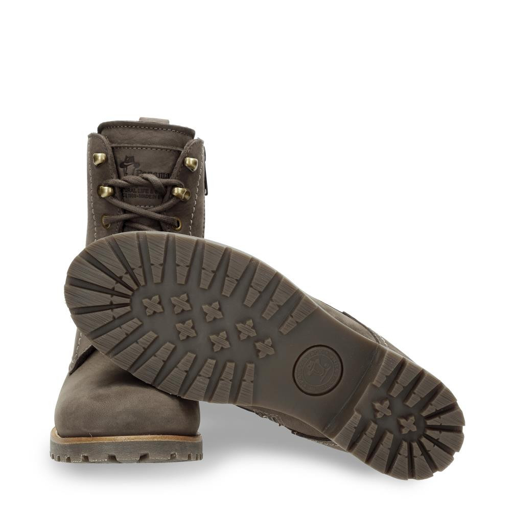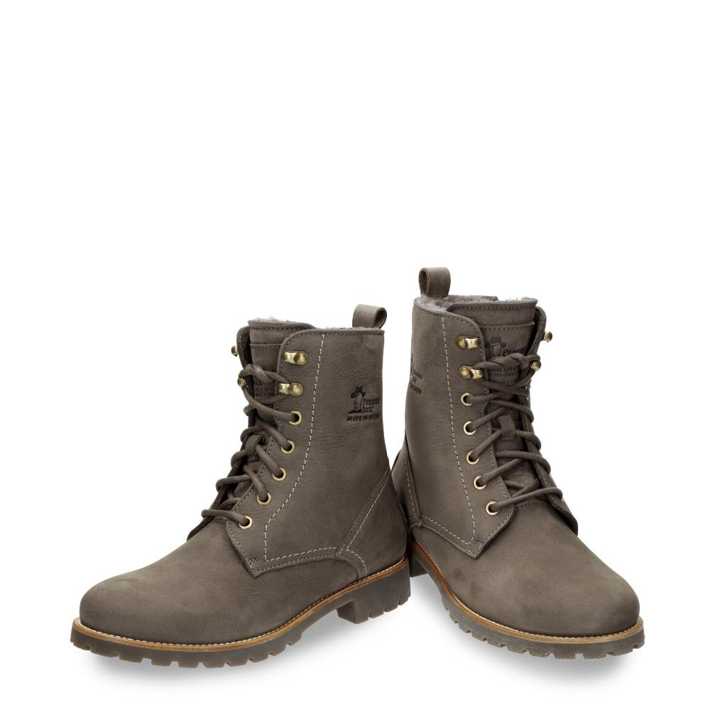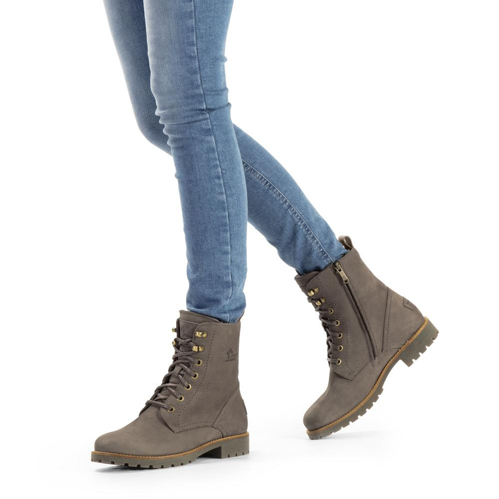 Flacher Damenstiefel | WATERPROOF Nubukleder in Grau | Schnürverschluss und Reißverschluss | Lammfellinnenfutter | Anatomisch herausnehmbare Innensohle | Flexible und robuste Sohle aus Naturkautschuk | Schafthöhe: 16 cm | Absatzhöhe: 4 cm. | 100% Hergestellt in Spanien