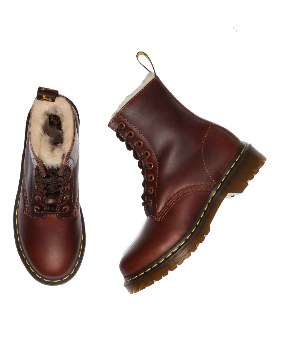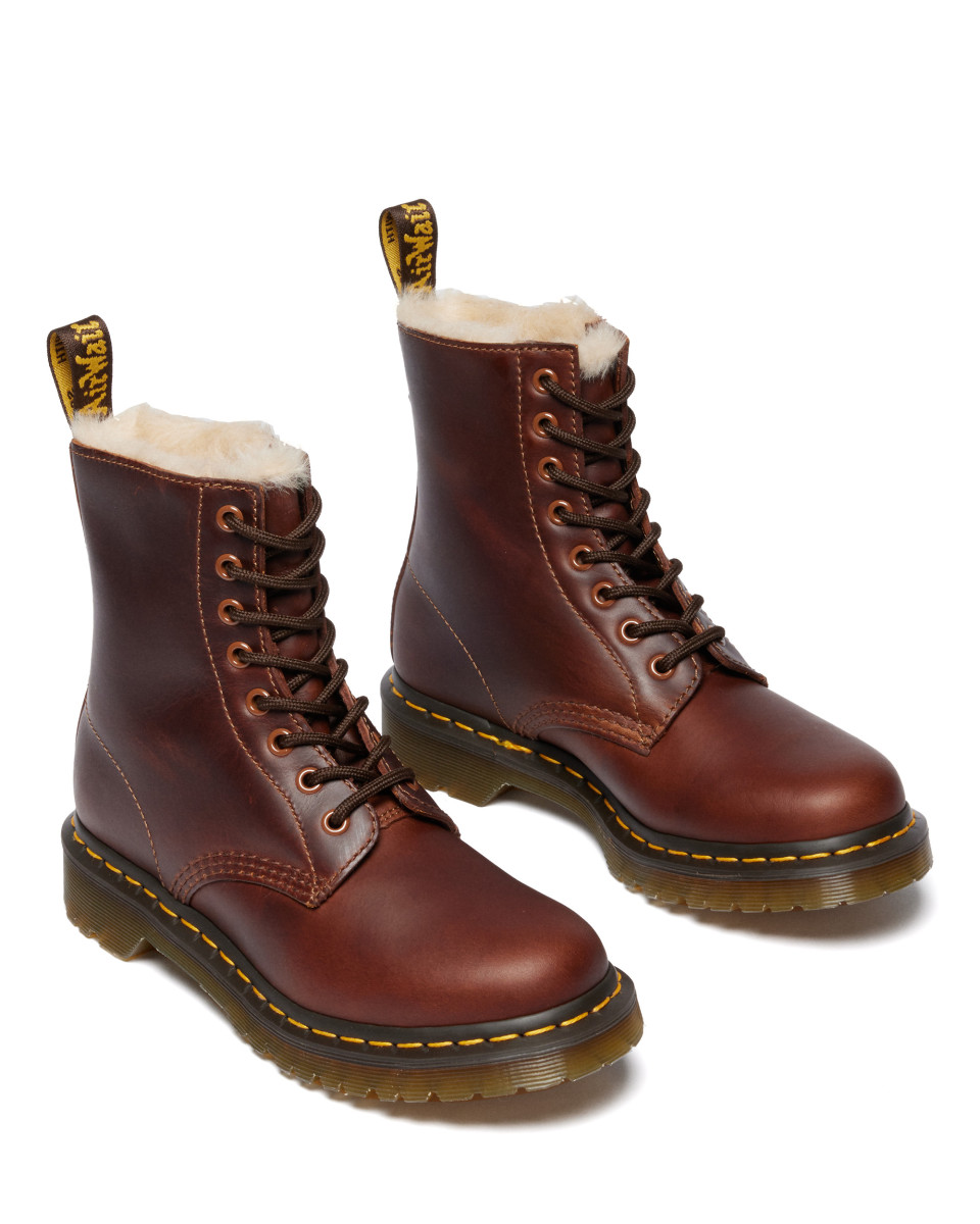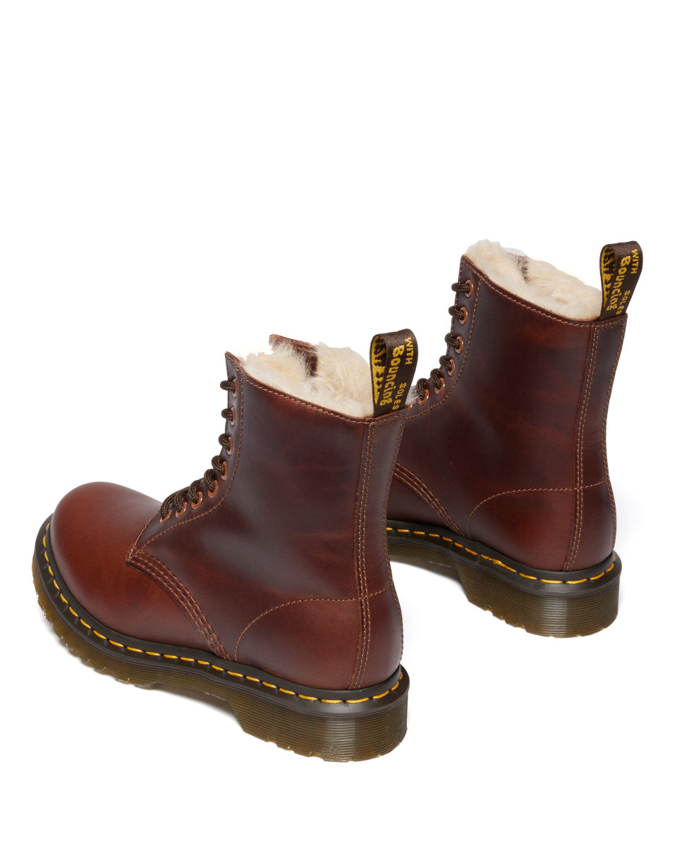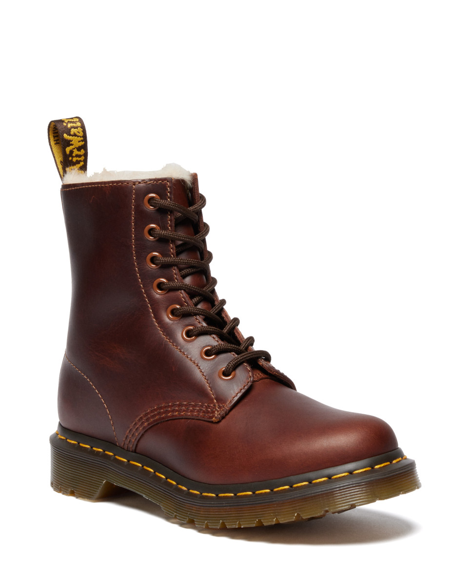 Mit Kunstfell gefüttert | Sitzt auf der ikonischen und bequemen Dr. Martens Air Cushion Sohle | Mit solidem, vernähten Goodyear Rahmen | Gefertigt aus Orleans, einem weichen, leicht strukturierten, gewachsten Leder | Mit klassischer Docs DNA, darunter seitlich geriffelte Sohle, sichtbare Nähte und Schlaufe an der Ferse