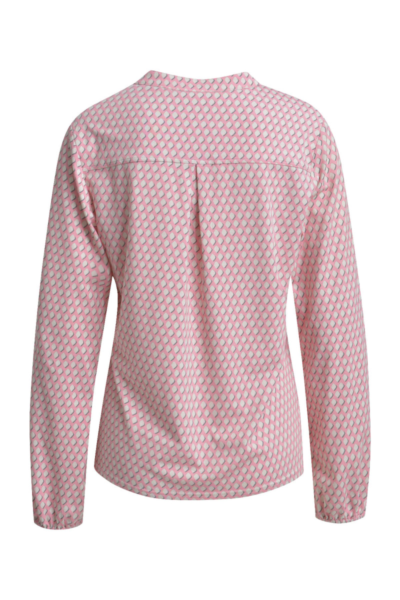 Diese charmante Langarmbluse besticht durch ihr raffiniertes, flächendeckendes grafisches Muster. Das Design setzt auf eine ansprechende Wiederholung von tropfenförmigen Elementen, die dem Kleidungsstück eine moderne und zugleich verspielte Ausstrahlung verleihen.