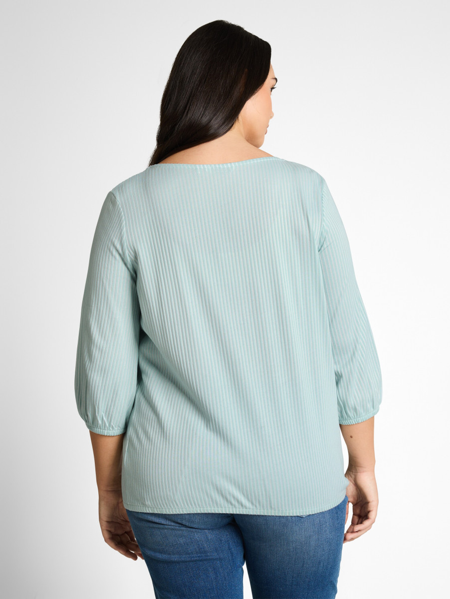 Diese gestreifte Bluse mit 3/4-Ärmeln überzeugt durch ein Bindeband am Ausschnitt und einen elastischen Gummibund an Saum und Ärmeln. Der weiche Single-Jersey aus Baumwolle bietet angenehmen Tragekomfort und sorgt für eine entspannte Passform. Ein vielseitiges Oberteil, das sich unkompliziert in verschiedene Casual-Looks integrieren lässt.Lief.-Art-Nr: 1051961