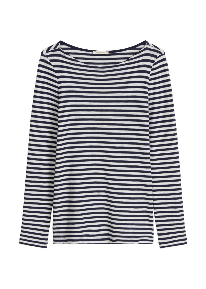 Es ist DAS Essential für den berühmten French Chic: das superlässige Ringel-Longsleeve aus weicher, reiner Bio-Baumwolle in hochwertiger Slub-Jersey-Qualität. Modell mit U-Boot-Ausschnitt und dezentem Logoprint am Saum. Der Griff: weich, locker und körnig zugleich. Dieses hochwertige Kleidungsstück aus biologisch angebauter Baumwolle ist Ausdruck unserer Verantwortung für die Umwelt. Wie kein anderes verbindet es Eleganz mit Lässigkeit und passt am besten zu ausgestellten Jeans, weiten Hosen, fließenden Röcken und Blazern.