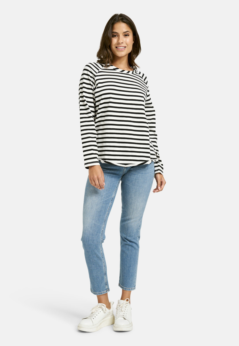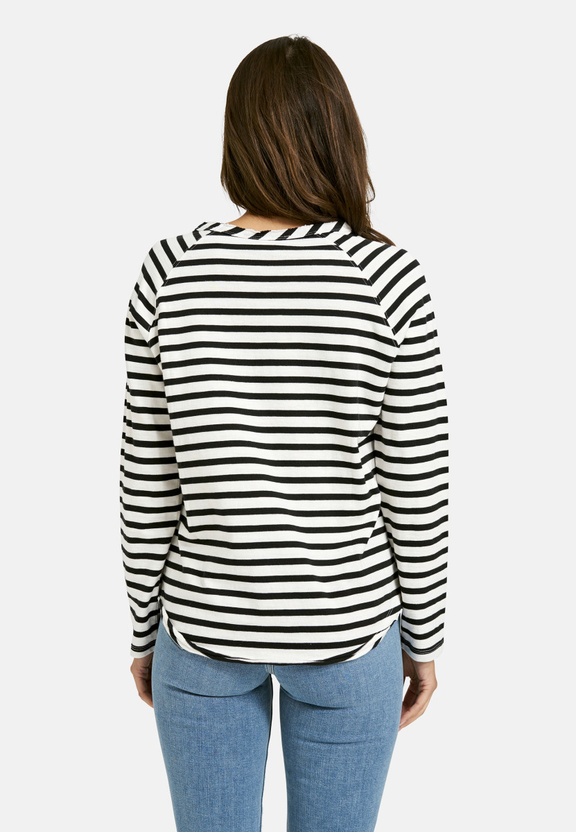 Rundhalsausschnitt | Langarm | Lockere Passform | Gestreift | Abgerundeter Saum | Reine Baumwolle