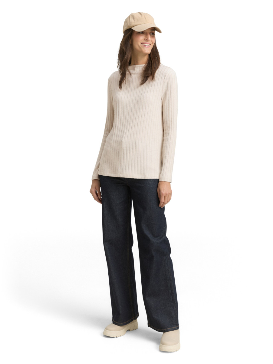 Weiches Longsleeve mit Rippstruktur. Mit kurzem Stehkragen und Seitenschlitzen. Regular Fit - gerader Schnitt | Brustweite bei Größe M ca. 53 cm | Rückenlänge bei Größe M ca. 63 cm