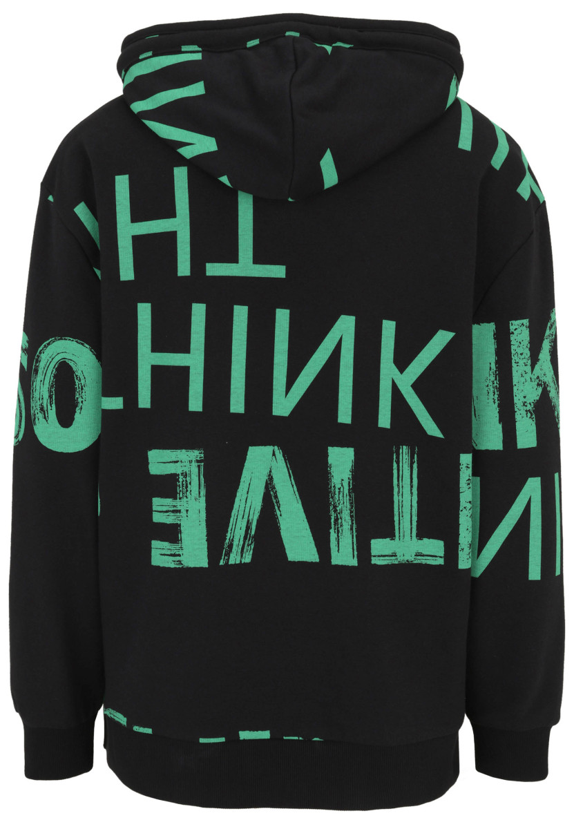 Das lässige Sweatshirt mit Hoodie von Doris Streich ist aus elastischer Sweatware gefertigt. Der markante Buchstaben-Print THINK POSITIVE und die dekorativen Kordeln mit Silikonenden machen dieses Sweatie zum Hingucker. Das elastische Material und die feminine leicht fledermaus-artige Schnittführung sorgen für einen hohen Tragekomfort. Alloverprint, nicht platziert - jedes Teil ein Unikat.