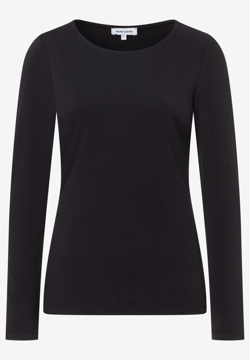 Das Basic-Langarmshirt von MORE & MORE mit U-Boot Ausschnitt ist ein toller Allrounder, der sich sehr vielseitig kombinieren lässt und in keinem Kleiderschrank fehlen sollte. Das Shirt kann solo zu Rock oder Hose getragen werden, sieht aber auch unter einem Cardigan oder Blazer sehr gut aus.