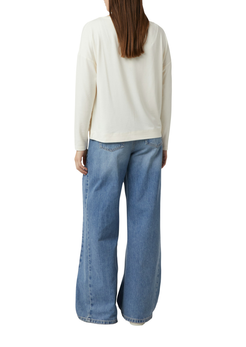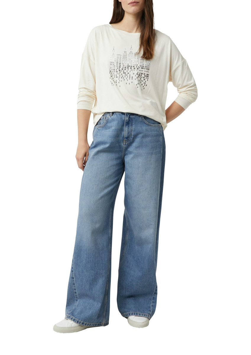 Moderner Casual-Chic trifft auf feminine Details: Dieses Regular Fit Langarmshirt überzeugt mit seinem eleganten U-Boot-Ausschnitt und überschnittenen Schultern für eine entspannte Silhouette. Der ausdrucksstarke Frontprint wird durch edle Strassdetails aufgewertet und setzt stilvolle Akzente. Ein vielseitiges Basic-Piece, das sich perfekt für entspannte Alltags-Looks oder smarte Casual-Outfits eignet.