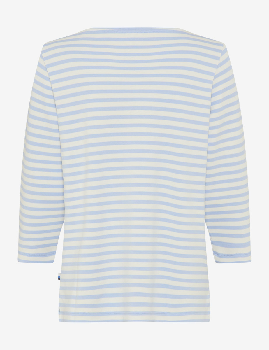 Entdecken Sie dieses lässige Langarmshirt, das mit seinem klassischen, feinen Ringeldesign maritimes Flair versprüht. Das Damenoberteil zeichnet sich durch seinen zeitlosen Schnitt, den Rundhalsausschnitt und die angenehme 3/4-Armlänge aus. Es ist ein echtes Kombinationswunder und passt hervorragend zu unifarbenen Hosen, Röcken oder Shorts, um einen entspannten, aber dennoch gepflegten Alltagslook zu kreieren. Durch das hochwertige Material bietet es den ganzen Tag über einen spürbar weichen Tragekomfort. Dieses Shirt ist ein unverzichtbares Basic, das in keiner gut sortierten Damengarderobe fehlen sollte und Ihnen vielfältige Styling-Möglichkeiten eröffnet.