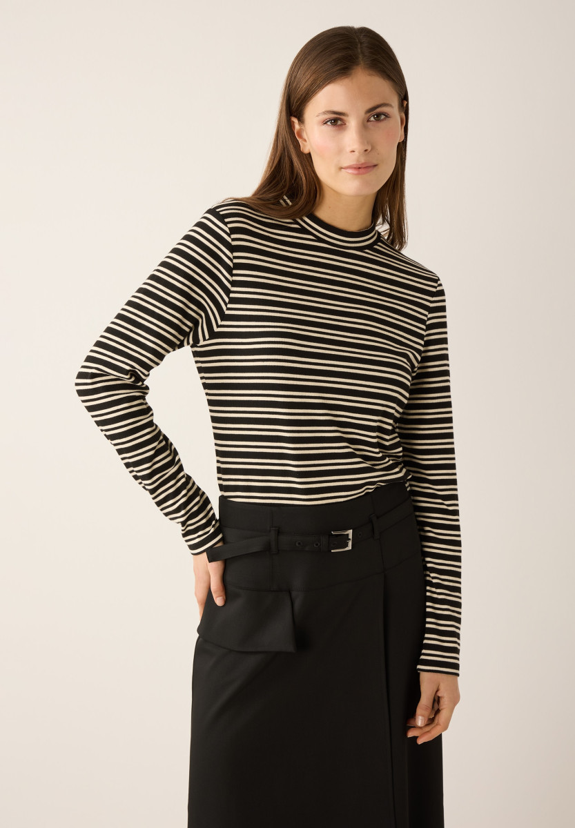 Schmale, körpernahe Form | Turtleneck | Lange Ärmel | Gerippte Jerseyqualität mit 2-fabrigem Streifenmuster | Viskose-Mix