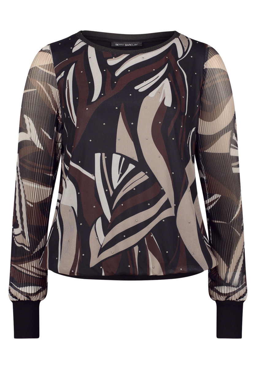 Passform: Figurbetont | Gesamtlänge: 64 cm | Ärmeldetail: mit Raffung | Ärmellänge: Langarm | Ausschnittform: U-Boot-Ausschnitt | Materialart: Mesh | Muster: Grafisch