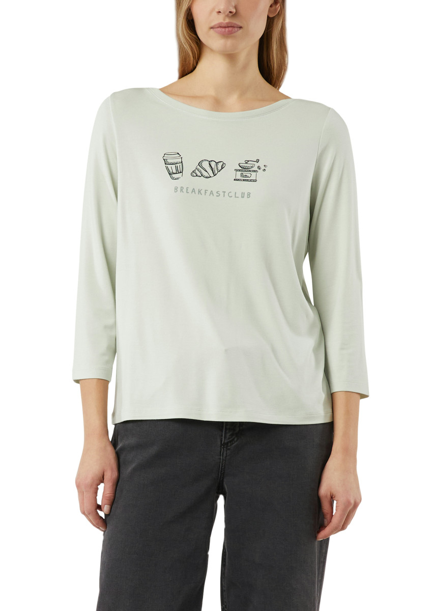 Dieses Jersey-T-Shirt vereint lässigen Komfort mit femininem Charme. Der moderne U-Boot-Ausschnitt betont dezent Ihre Schulterpartie, während die praktischen 3/4-Ärmel perfekt für wechselnde Temperaturen sind. Der ausdrucksstarke Frontprint setzt modische Akzente und macht das Shirt zum vielseitigen Begleiter. Die Regular Fit Passform schmeichelt jeder Figur und bietet angenehme Bewegungsfreiheit. Kombinieren Sie es zur Jeans für entspannte Casual-Looks oder stylen Sie es unter einem Blazer für einen raffinierten Kontrast.