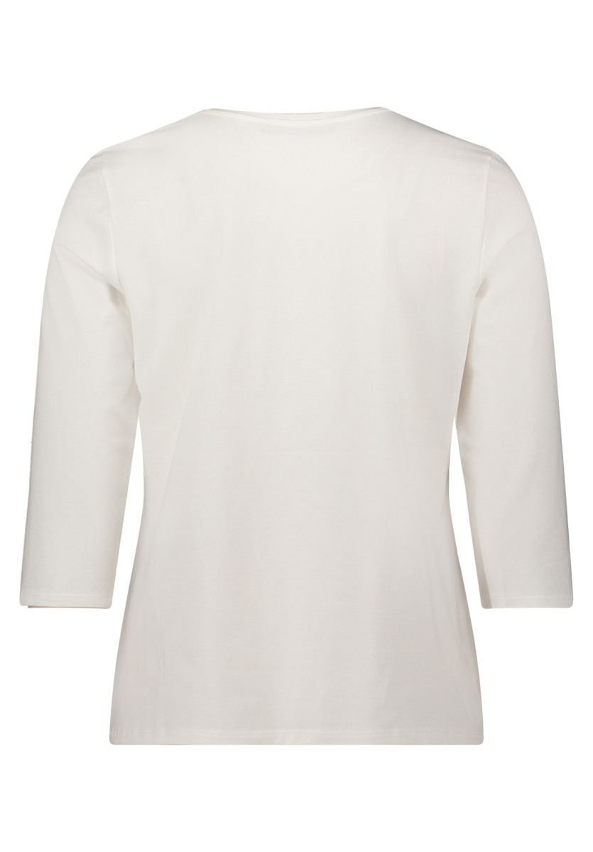Dieses tailliert geschnittene Oberteil besticht durch eine feminine Silhouette und eine Gesamtlänge von ca. 64 cm, die für eine harmonische Passform sorgt. Die 3/4-langen Ärmel verleihen dem Design eine elegante Note und bieten gleichzeitig angenehmen Tragekomfort. Der klassische Rundhals-Ausschnitt rundet das zeitlose Gesamtbild stilvoll ab. Hergestellt aus hochwertigem Jersey-Material, überzeugt das Oberteil mit einem weichen Griff und einem angenehmen, elastischen Tragegefühl. Das Placement-Muster setzt gezielte Akzente und verleiht dem Modell eine moderne, individuelle Ausstrahlung, die vielseitige Stylingmöglichkeiten eröffnet.