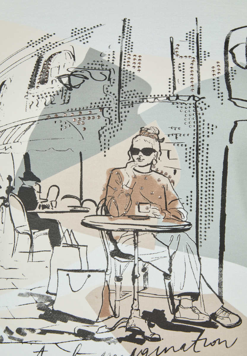 Ein bequemes Jerseyshirt mit urbanem Charme. Der grafische City-Print wird durch funkelnde Glitzersteine stilvoll hervorgehoben. Der Rundhalsausschnitt und die 3/4-Ärmel verleihen dem Shirt eine feminine Silhouette. Die weiche Jerseyqualität aus Viskose und Elasthan sorgt für angenehmen Tragekomfort. Perfekt für lässige Alltagslooks. Urbaner City-Print. Glitzernde Ziersteine. Bequemer 3/4-Arm. Rundhalsausschnitt. Weicher Viskose-Jersey.