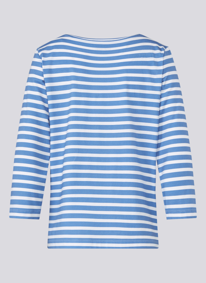 Dieses gestreifte Shirt ist die perfekte Kombination aus klassischem Design und zeitgemäßem Komfort, ideal für Freizeit und Alltag. Klassisches Streifenmuster - Frische Blau-Weiß-Kombination für einen frischen Look. Bequemer Schnitt - Figurbetont und angenehm zu tragen, ohne einzuengen. 3/4-Ärmel - Praktisch und vielseitig für jede Jahreszeit. Vielseitig kombinierbar - Perfekt zu Jeans, Stoffhosen oder Röcken. Dieses Shirt ist ein echter Allrounder und verleiht jedem Outfit eine frische und stilvolle Note.