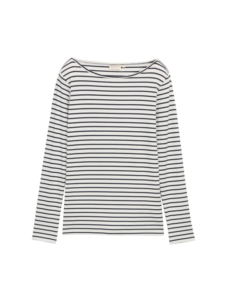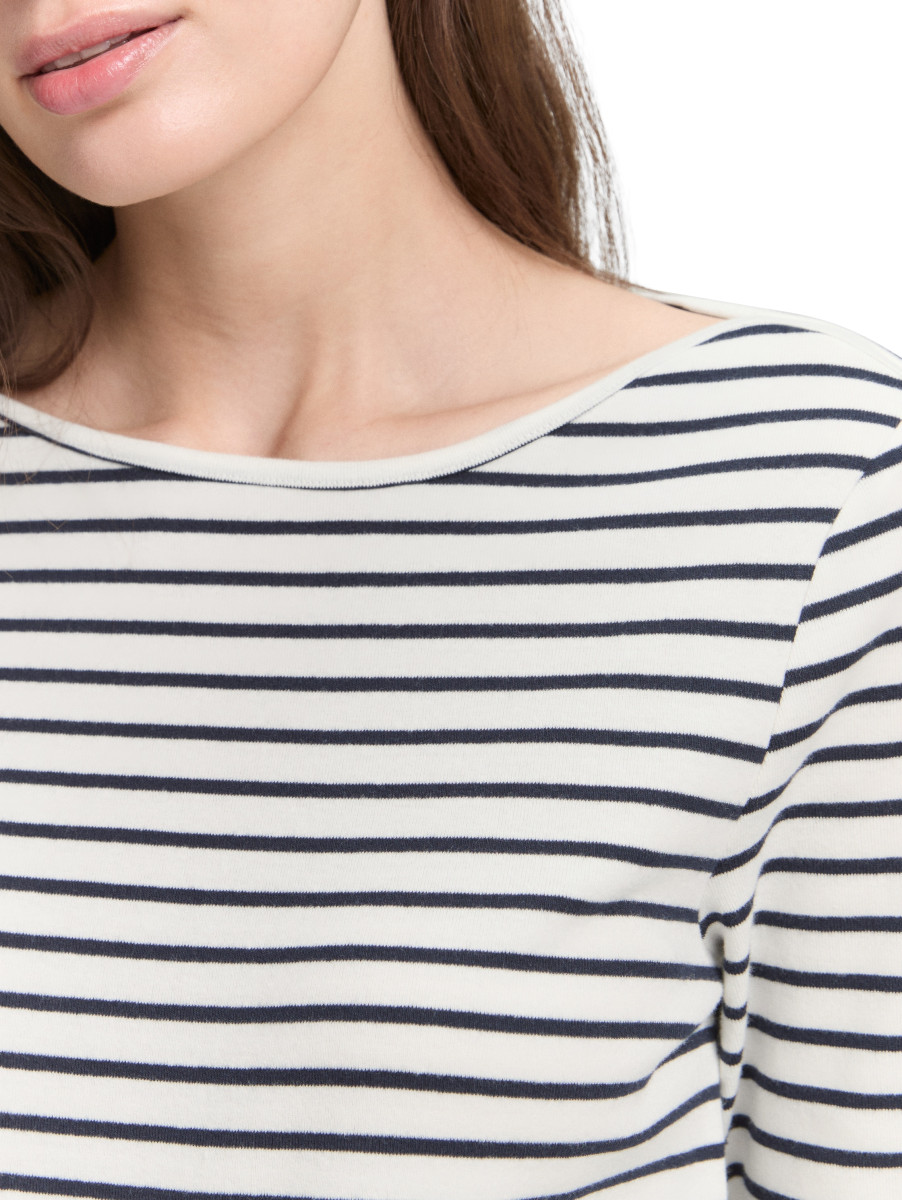 Gestreiftes Langarmshirt mit U-Boot-Ausschnitt. Aus einem Baumwollstoff mit leichtem Stretch-Anteil für ein angenehmes Tragegefühl.