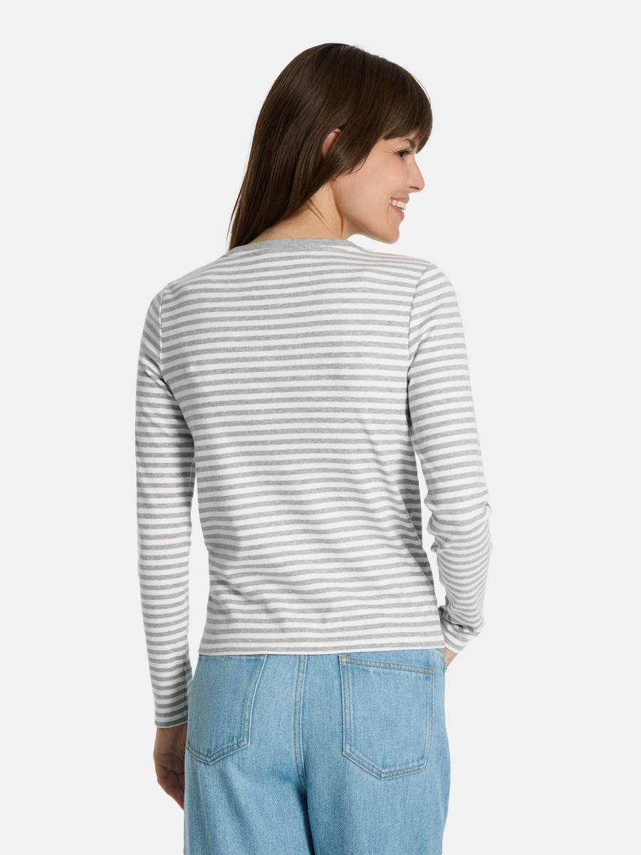 Klassisches Damen-Langarmshirt mit angenehmem Sitz. Hergestellt aus 95% Baumwolle und 5% Elasthan für leichte Elastizität. Vielseitig kombinierbar für Alltag und Freizeit. Pflegehinweis: Maschinenwäsche.