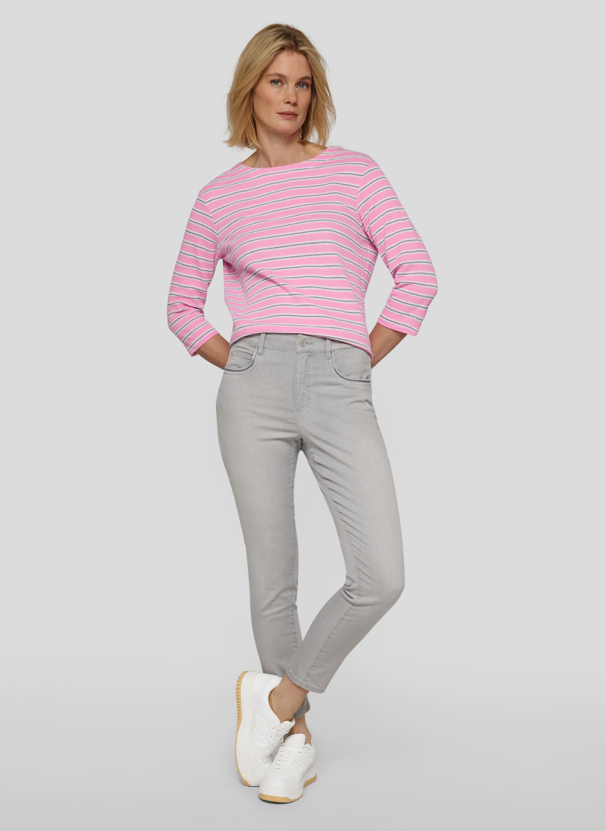 Dieses Shirt begeistert mit einer fein strukturierten Oberfläche und klassischen Ringeln. Der angenehme Materialmix sorgt für ein weiches Tragegefühl, Formstabilität und eine schöne Leichtigkeit. Der 3/4-Arm und der schlichte Rundhalsausschnitt unterstreichen den zeitlosen Charakter. Ein vielseitiger Begleiter für gepflegte Casual-Looks. Strukturierte Oberfläche. Klassisches Ringeldesign. 3/4-Ärmel. Rundhalsausschnitt. Angenehmer Materialmix.Lief.-Art-Nr: 56-117382