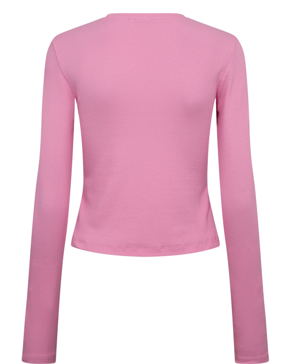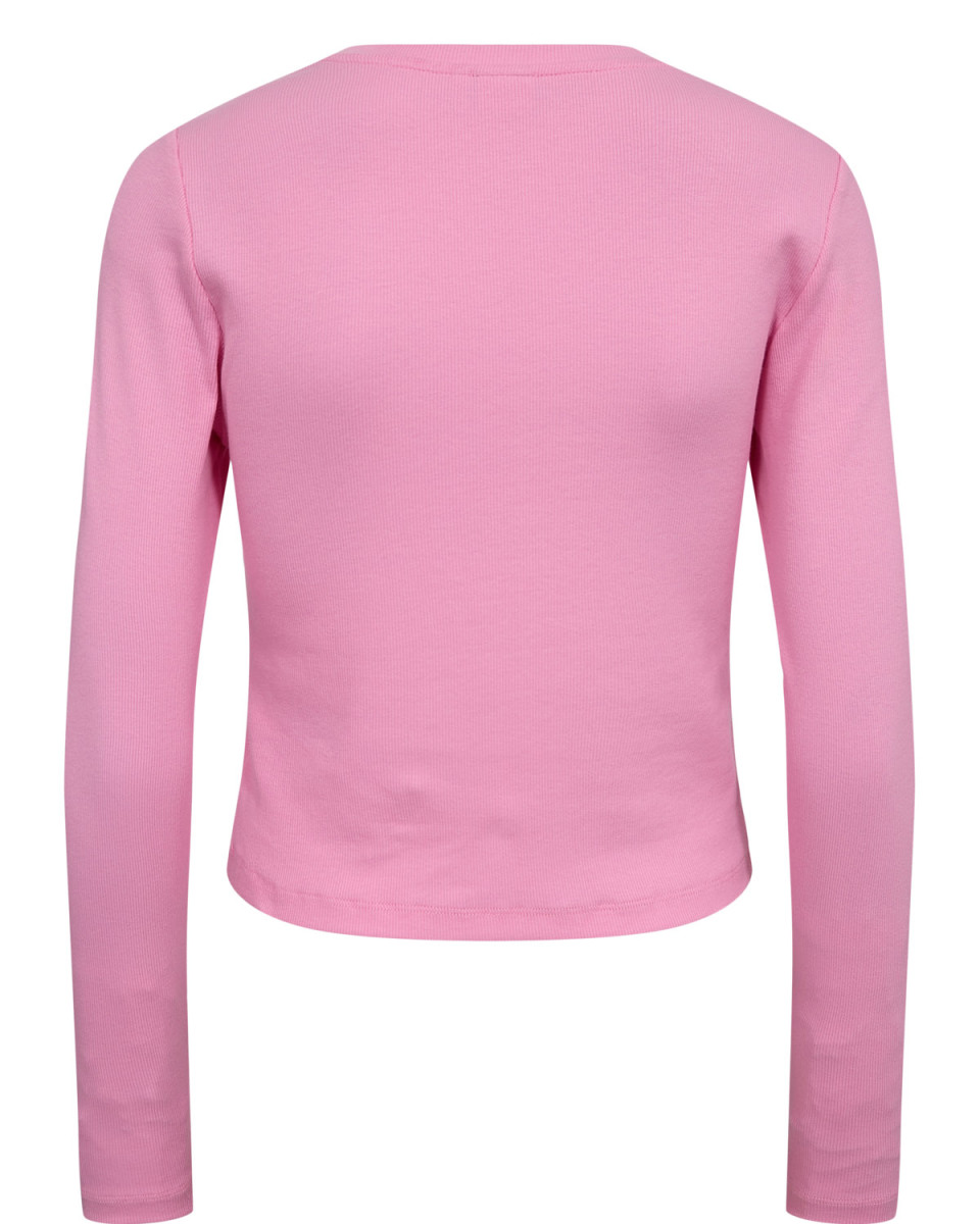 Kurz geschnittenes Langarm-T-Shirt für Damen. Schlichter, vielseitig kombinierbarer Schnitt, ideal für den Alltag und als Lagenlook. Das Material sorgt für weichen Griff und elastischen Tragekomfort.