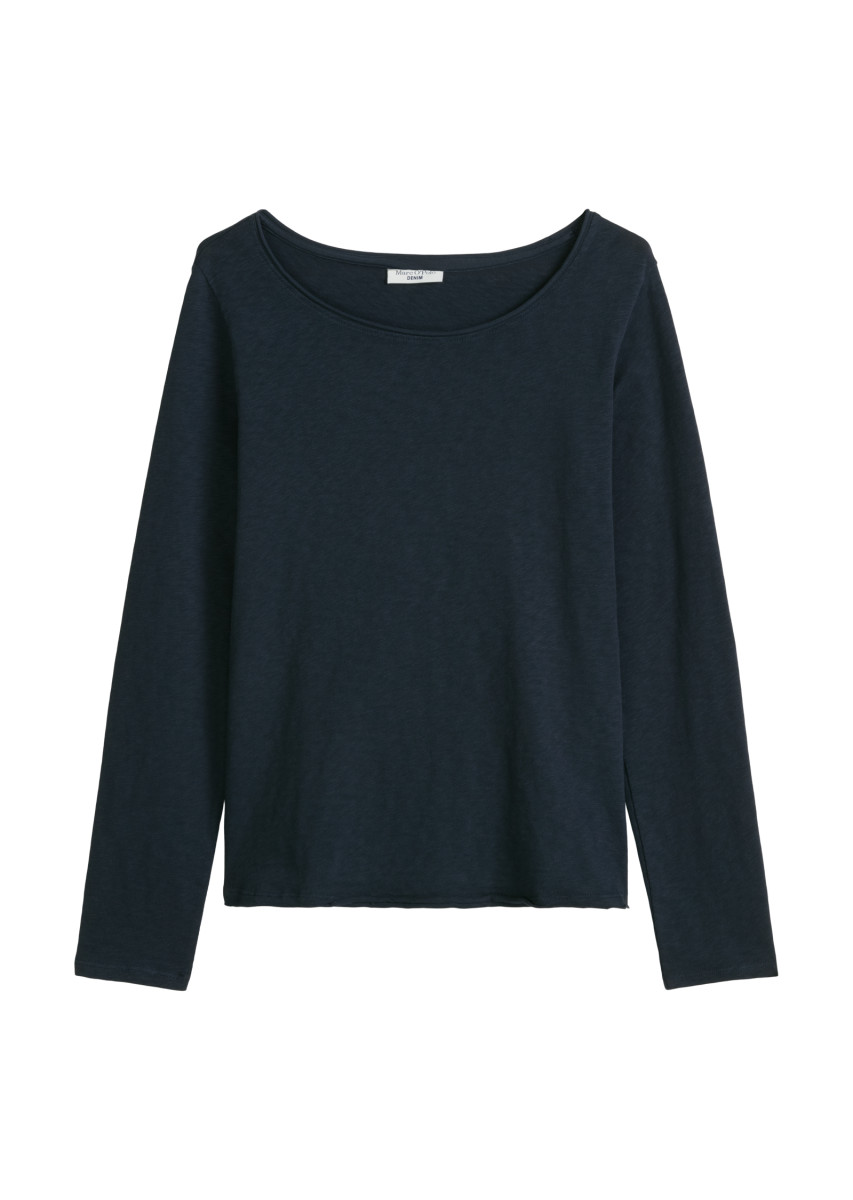 Marc O'Polo Denim Damen Longsleeve Rundhalsausschnitt supersofte Haptik angenehmes Tragegefühl aus reiner, nachhaltig produzierter Bio-Baumwolle mit cooler Slub-Jersey-Struktur lockerer Regular Fit