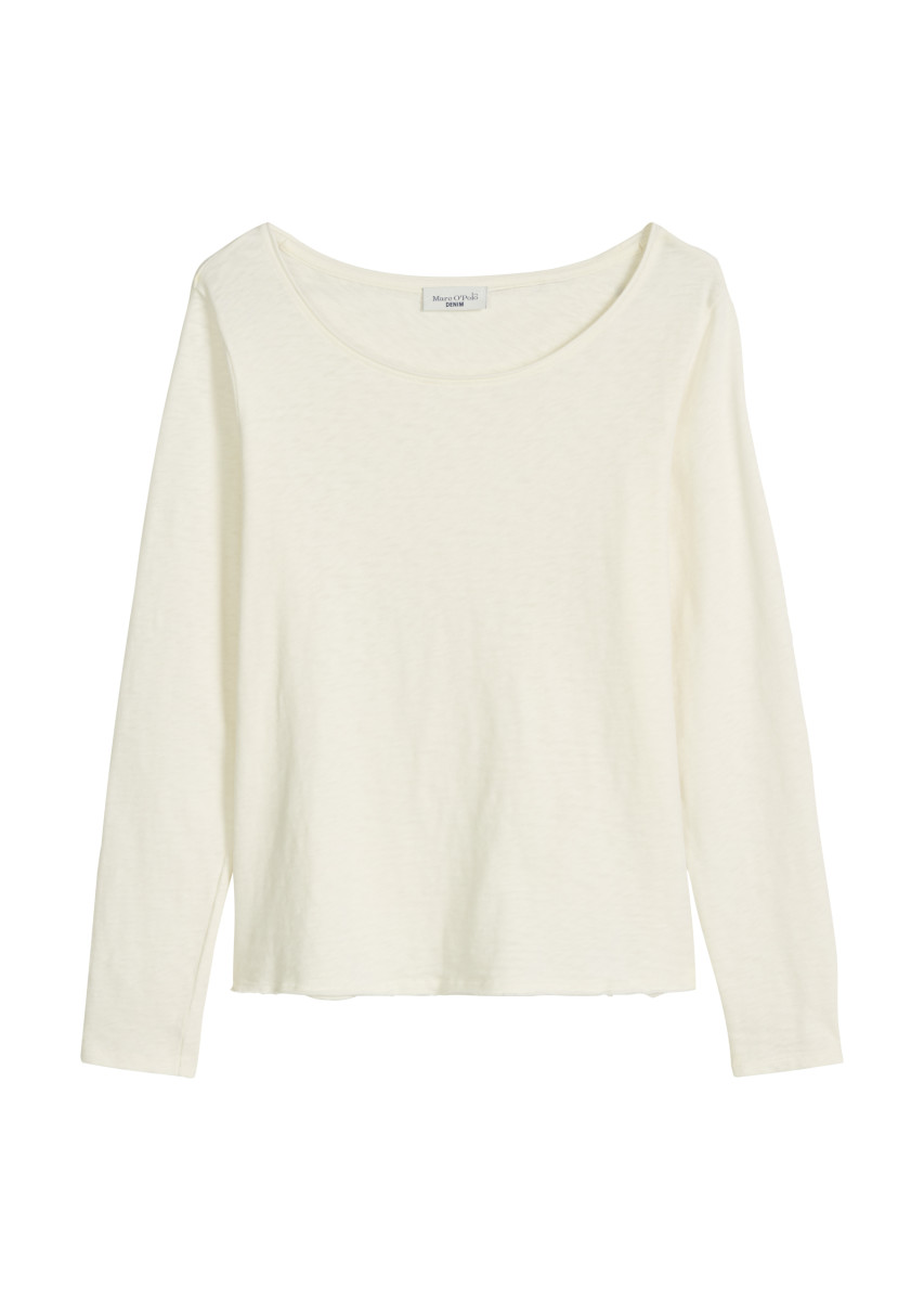 Marc O'Polo Denim Damen Longsleeve Rundhalsausschnitt supersofte Haptik angenehmes Tragegefühl aus reiner, nachhaltig produzierter Bio-Baumwolle mit cooler Slub-Jersey-Struktur lockerer Regular Fit