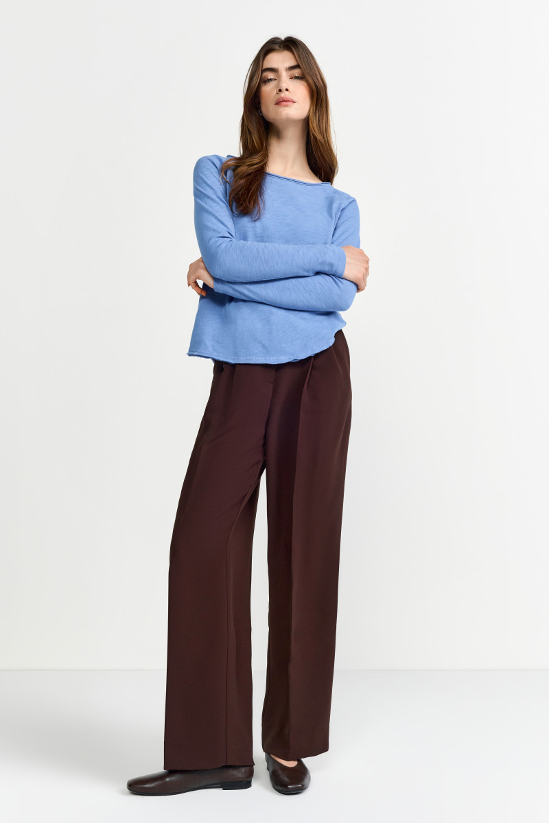 Rundhalsausschnitt | Langarm | Abgerundeter Saum | Uni | Reine Baumwolle