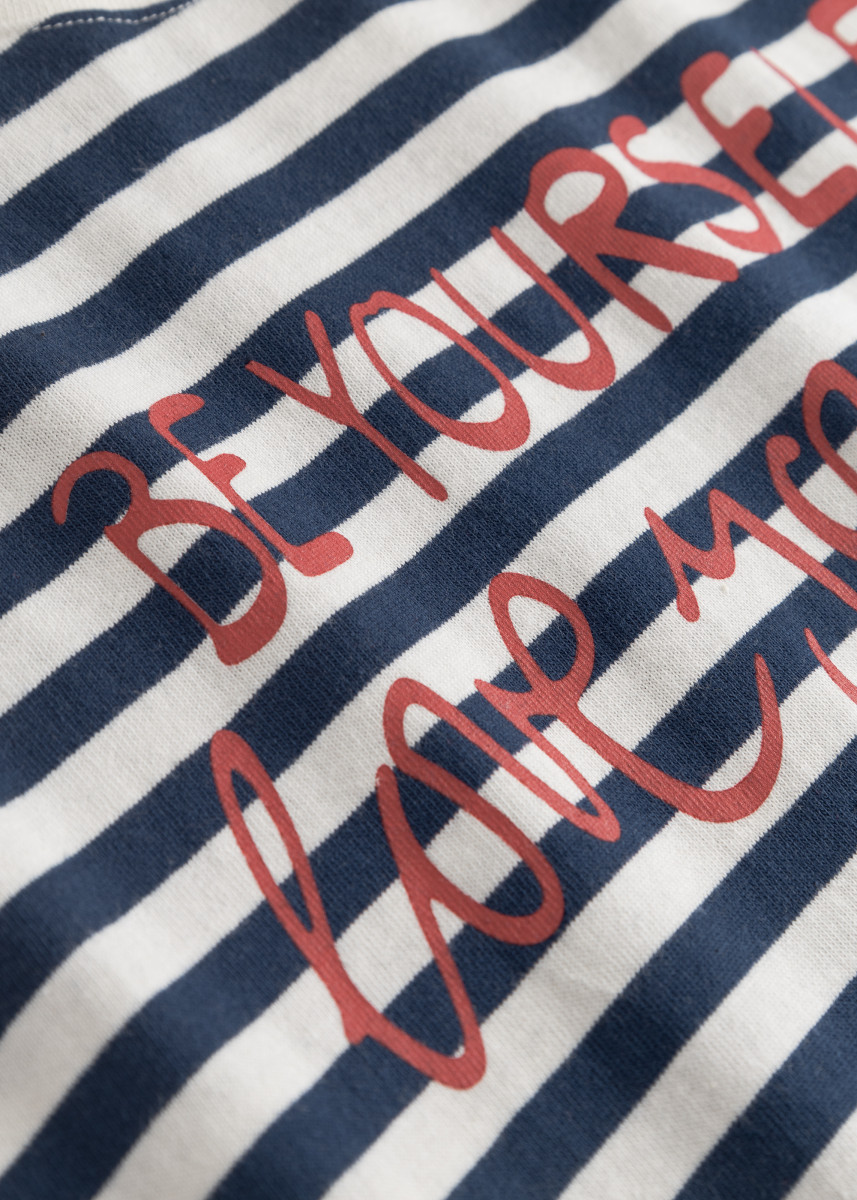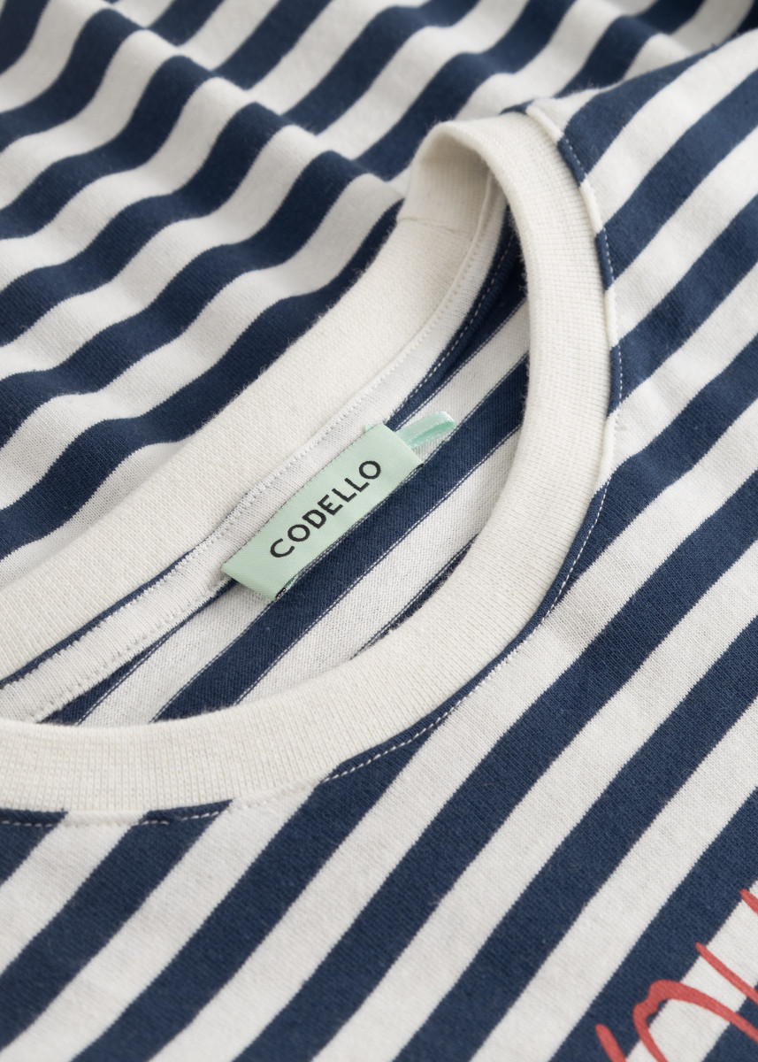 Dieses Damen-Longsleeve überzeugt mit einem dezenten Streifenmuster und einem modischen Schriftzug, der dem Shirt eine moderne Note verleiht. Der klassische Langarmschnitt sorgt für eine angenehme Passform und lässt sich vielseitig zu Jeans oder Röcken kombinieren. Dank des lässigen Designs ist das Longsleeve ein komfortabler Begleiter für den Alltag und eignet sich gut für Lagenlooks.Lief.-Art-Nr: 61B0007