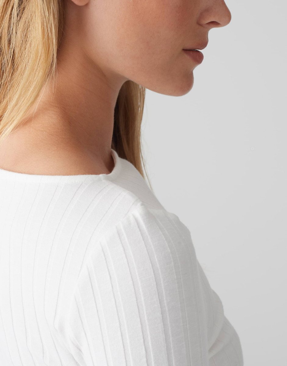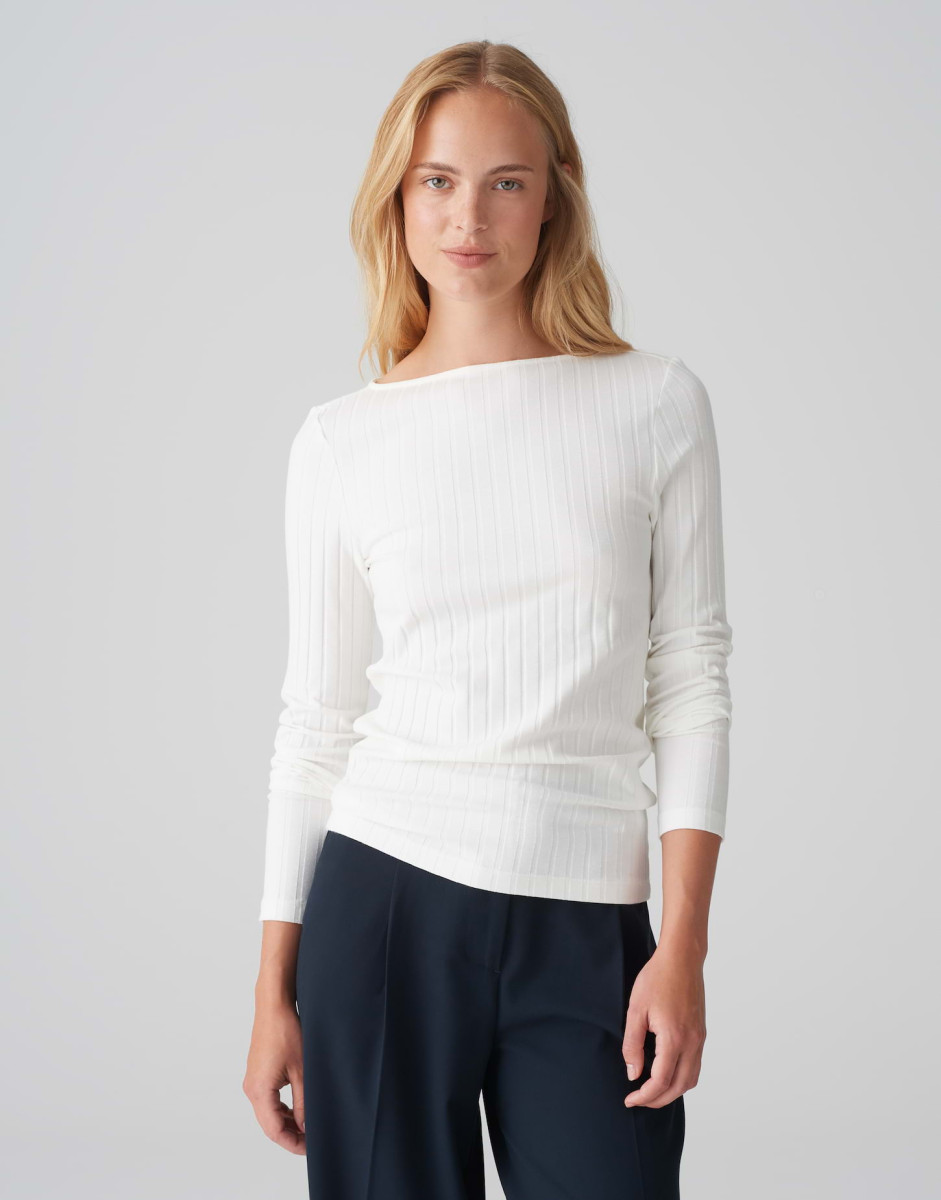 Baumwoll Mix | Softer Jersey | Schmal geschnitten | U-Boot-Aussschnitt | Langarm | Breite Rippstruktur | Easy Basicshirt für jeden Tag | Perfekt als Unterzieher geeignet