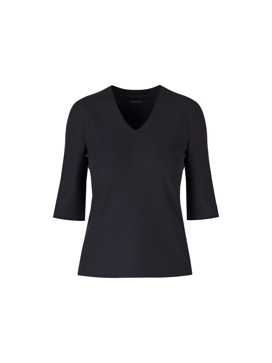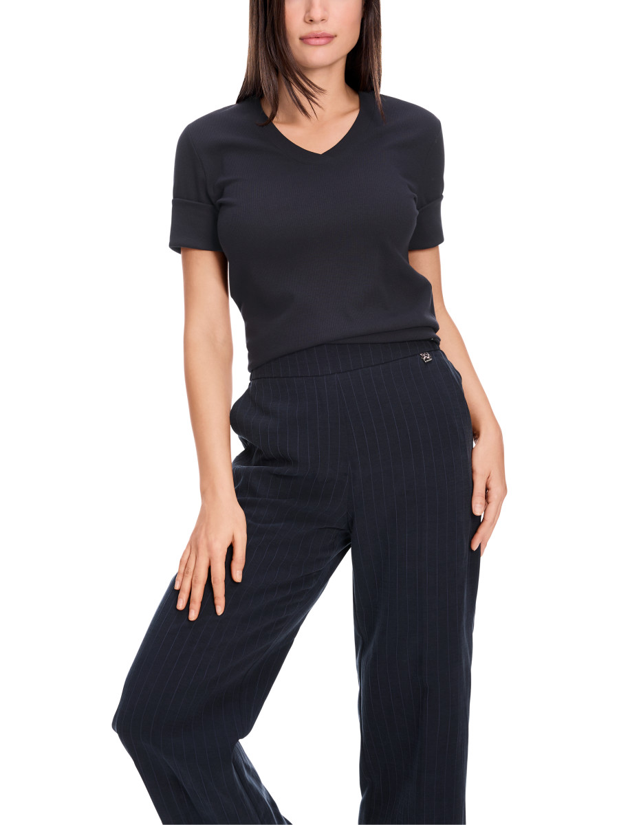 Leger geschnittenes, easy Shirt mit halblangen Ärmeln, die sich ganz lässig hochkrempeln lassen. Das Shirt ist aus elastischem Baumwoll-Ripp-Jersey mit Elastananteil gefertigt und verspricht damit besten Tragekomfort.|Farbe: white|Locker geschnitten|Abgerundeter V-Ausschnitt|Das Model ist 179 cm groß und trägt N3/38